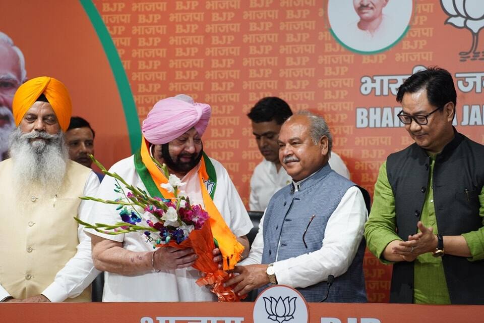 Captain Amrinder Singh: ਸਾਬਕਾ ਮੁੱਖ ਮੰਤਰੀ ਕੈਪਟਨ ਅਮਰਿੰਦਰ ਸਿੰਘ ਨੇ ਬੀਜੇਪੀ ਨਾਲ ਨਵੀਂ ਸਿਆਸੀ ਪਾਰੀ ਦੀ ਸ਼ੁਰੂਆਤ ਕੀਤੀ ਹੈ। ਉਨ੍ਹਾਂ ਨੇ ਫੇਸਬੁੱਕ ਉੱਪਰ ਪੋਸਟ ਪਾ ਕੇ ਕਿਹਾ ਹੈ ਕਿ ਮੈਨੂੰ ਇਹ ਦੱਸਦਿਆਂ ਖੁਸ਼ੀ ਹੋ ਰਹੀ ਹੈ ਕਿ ਪੰਜਾਬ ਲੋਕ ਕਾਂਗਰਸ ਕੇਂਦਰੀ ਮੰਤਰੀ ਨਰਿੰਦਰ ਸਿੰਘ ਤੋਮਰ ਤੇ ਕਿਰਨ ਰਿਜਿਜੂ ਜੀ ਦੀ ਮੌਜੂਦਗੀ ਵਿੱਚ ਭਾਜਪਾ ਵਿੱਚ ਵਿਲੀਨ ਹੋ ਗਈ ਹੈ। ਪੰਜਾਬ ਦੀ ਬਿਹਤਰੀ ਲਈ ਮੈਂ ਲਗਾਤਾਰ ਕੰਮ ਕਰਦਾ ਰਹਾਂਗਾ। ਅਸੀਂ ਰਾਜ ਤੇ ਰਾਸ਼ਟਰ ਦੀ ਸੁਰੱਖਿਆ ਤੇ ਖੁਸ਼ਹਾਲੀ ਨੂੰ ਯਕੀਨੀ ਬਣਾਉਣ ਲਈ ਪੂਰੀ ਕੋਸ਼ਿਸ਼ ਕਰਾਂਗੇ। ਜੈ ਹਿੰਦ!..