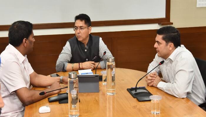 Chandigarh News : ਪੰਜਾਬ ਦੇ ਨਵੀਂ ਅਤੇ ਨਵਿਆਉਣਯੋਗ ਊਰਜਾ ਸਰੋਤ ਮੰਤਰੀ ਅਮਨ ਅਰੋੜਾ ਨੇ ਸ਼ੁੱਕਰਵਾਰ ਨੂੰ ਪ੍ਰਸ਼ਾਸਕੀ ਸੁਧਾਰ ਅਤੇ ਜਨ ਸ਼ਿਕਾਇਤ ਨਿਵਾਰਨ (ਡੀ.ਜੀ.ਆਰ.ਐਂਡ.ਪੀ.ਜੀ.) ਮੰਤਰੀ ਵਜੋਂ ਇੱਕ ਹੋਰ ਵਿਭਾਗ ਦਾ ਚਾਰਜ ਸੰਭਾਲ ਲਿਆ ਹੈ। ਅਹੁਦਾ ਸੰਭਾਲਣ ਤੋਂ ਬਾਅਦ ਅਮਨ ਅਰੋੜਾ ਨੇ ਪ੍ਰਮੁੱਖ ਸਕੱਤਰ ਸ੍ਰੀ ਤੇਜਵੀਰ ਸਿੰਘ, ਡਾਇਰੈਕਟਰ ਸ੍ਰੀ ਗਿਰੀਸ਼ ਦਿਆਲਨ ਅਤੇ ਵਿਭਾਗ ਦੇ ਹੋਰ ਅਧਿਕਾਰੀਆਂ ਨਾਲ ਮੀਟਿੰਗ ਕਰਕੇ ਵਿਭਾਗ ਦੇ ਕੰਮਕਾਜ ਦਾ ਜਾਇਜ਼ਾ ਲਿਆ। ਇਸ ਦੌਰਾਨ ਪੇਸ਼ਕਾਰੀ ਦਿੰਦੇ ਹੋਏ ਡੀ.ਜੀ.ਆਰ. ਦੇ ਪ੍ਰਮੁੱਖ ਸਕੱਤਰ ਸ੍ਰੀ ਤੇਜਵੀਰ ਸਿੰਘ ਨੇ ਕੈਬਨਿਟ ਮੰਤਰੀ ਨੂੰ ਦੱਸਿਆ ਕਿ ਸੂਬੇ ਵਿੱਚ 535 ਸੇਵਾ ਕੇਂਦਰਾਂ ਰਾਹੀਂ ਲੋਕਾਂ ਨੂੰ ਨਿਰਧਾਰਤ ਸਮੇਂ ਵਿੱਚ 433 ਸੇਵਾਵਾਂ ਮੁਹੱਈਆ ਕਰਵਾਈਆਂ ਜਾ ਰਹੀਆਂ ਹਨ। ਉਨ੍ਹਾਂ ਨੇ ਜਨਤਕ ਸ਼ਿਕਾਇਤ ਨਿਵਾਰਣ ਪ੍ਰਣਾਲੀ (ਪੀ.ਜੀ.ਆਰ.ਐੱਸ.), ਈ-ਆਫਿਸ ਅਤੇ ਸਟੇਟ ਡੀ.ਬੀ.ਟੀ. ਸੈੱਲ ਅਤੇ ਵਿਭਾਗ ਵੱਲੋਂ ਚਲਾਏ ਜਾ ਰਹੇ ਹੋਰ ਪ੍ਰਾਜੈਕਟਾਂ ਬਾਰੇ ਵੀ ਜਾਣਕਾਰੀ ਦਿੱਤੀ।