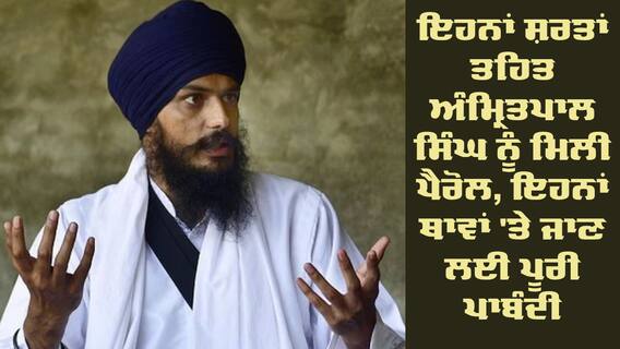 Amritpal Singh: ਖਡੂਰ ਸਾਹਿਬ ਤੋਂ ਲੋਕ ਸਭਾ ਚੋਣ ਜਿੱਤਣ ਵਾਲੇ ਅੰਮ੍ਰਿਤਪਾਲ ਸਿੰਘ ਜਲਦੀ ਹੀ ਸੰਸਦ ਮੈਂਬਰ ਵਜੋਂ ਸਹੁੰ ਚੁੱਕਣਗੇ। ਇਸ ਦੇ ਲਈ ਅੰਮ੍ਰਿਤਪਾਲ ਸਿੰਘ ਨੂੰ ਸ਼ੁੱਕਰਵਾਰ (5 ਜੁਲਾਈ) ਤੋਂ 4 ਦਿਨ ਜਾਂ ਇਸ ਤੋਂ ਘੱਟ ਦੀ ਪੈਰੋਲ ਮਿਲੀ ਹੈ। ਪਰ ਇਨ੍ਹਾਂ 4 ਦਿਨਾਂ ਵਿੱਚ ਉਹ ਨਾ ਤਾਂ ਰਈਆ ਸਥਿਤ ਆਪਣੇ ਘਰ ਆ ਸਕਣਗੇ, ਨਾ ਹੀ ਆਪਣੇ ਲੋਕ ਸਭਾ ਹਲਕੇ ਅਤੇ ਨਾ ਹੀ ਪੰਜਾਬ ਆ ਸਕਣਗੇ। ਅੰਮ੍ਰਿਤਪਾਲ ਨੂੰ ਇਹ ਪੈਰੋਲ ਕੁਝ ਸ਼ਰਤਾਂ ਨਾਲ ਦਿੱਤੀ ਗਈ ਹੈ।