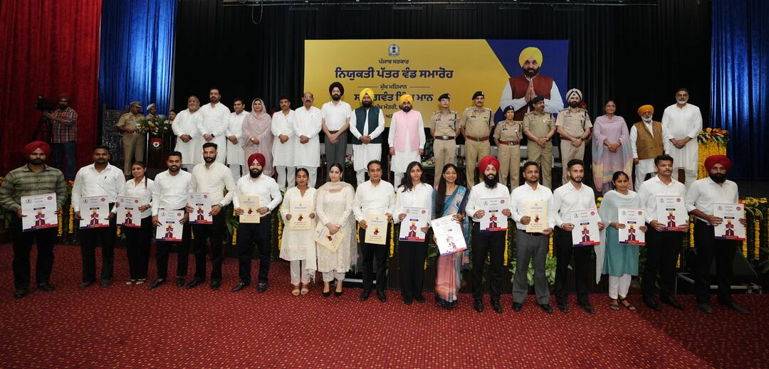 ਇੱਥੇ ਪੁਲਿਸ, ਕਾਨੂੰਨ ਤੇ ਨਿਆਂ ਅਤੇ ਗ੍ਰਹਿ ਮਾਮਲੇ ਵਿਭਾਗ ਵਿੱਚ 443 ਅਫ਼ਸਰਾਂ ਨੂੰ ਨਿਯੁਕਤੀ ਪੱਤਰ ਵੰਡਣ ਲਈ ਕਰਵਾਏ ਸਮਾਗਮ ਦੌਰਾਨ ਸੰਬੋਧਨ ਕਰਦਿਆਂ ਮੁੱਖ ਮੰਤਰੀ ਨੇ ਕਿਹਾ ਕਿ ਇਹ ਨਿਯੁਕਤੀ ਪੱਤਰ ਵੰਡਣ ਨਾਲ ਹੁਣ ਤੱਕ ਸਰਕਾਰੀ ਨੌਕਰੀਆਂ ਹਾਸਲ ਕਰਨ ਵਾਲੇ ਨੌਜਵਾਨਾਂ ਦੀ ਗਿਣਤੀ 44250 ਹੋ ਗਈ ਹੈ ਅਤੇ ਇਹ ਸਾਰੀਆਂ ਨਿਯੁਕਤੀਆਂ ਪੂਰੀ ਤਰ੍ਹਾਂ ਮੈਰਿਟ ਦੇ ਆਧਾਰ ਉਤੇ ਹੋਈਆਂ ਹਨ।