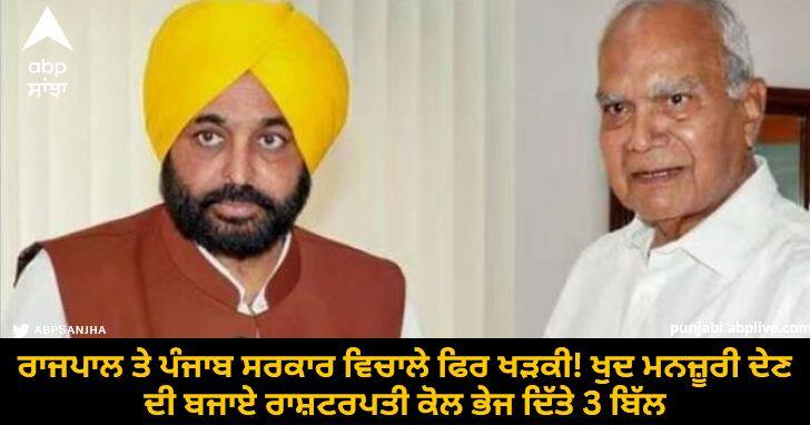 Punjab News: ਪੰਜਾਬ ਵਿੱਚ ਇੱਕ ਵਾਰ ਫਿਰ ਰਾਜਪਾਲ ਤੇ ਸਰਕਾਰ ਆਹਮੋ-ਸਾਹਮਣੇ ਆ ਗਏ ਹਨ। ਪੰਜਾਬ ਦੇ ਰਾਜਪਾਲ ਬਨਵਾਰੀ ਲਾਲ ਪੁਰੋਹਿਤ ਨੇ ਵਿਧਾਨ ਸਭਾ ਵੱਲੋਂ ਪਾਸ ਕੀਤੇ ਤਿੰਨ ਅਹਿਮ ਬਿੱਲ ਰਾਖਵੇਂ ਰੱਖ ਲਏ ਹਨ। ਰਾਜ ਭਵਨ ਨੇ ਜਾਣਕਾਰੀ ਦਿੱਤੀ ਹੈ ਕਿ ਇਨ੍ਹਾਂ ਬਿੱਲਾਂ 'ਤੇ ਰਾਸ਼ਟਰਪਤੀ ਨਾਲ ਚਰਚਾ ਕੀਤੀ ਜਾਵੇਗੀ।