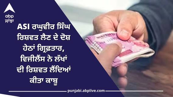 Punjab news: ਪੰਜਾਬ ਵਿਜੀਲੈਂਸ ਬਿਊਰੋ ਵੱਲੋਂ ਸੂਬੇ ਵਿੱਚ ਭ੍ਰਿਸ਼ਟਾਚਾਰ ਵਿਰੁੱਧ ਵਿੱਢੀ ਮੁਹਿੰਮ ਦੌਰਾਨ ਅੱਜ ਸੀ.ਆਈ.ਏ. ਸਮਾਣਾ, ਪਟਿਆਲਾ ਵਿਖੇ ਤਾਇਨਾਤ ਏ.ਐਸ.ਆਈ. ਰਘੁਵੀਰ ਸਿੰਘ ਨੂੰ ਰਿਸ਼ਵਤ ਵਜੋਂ 6 ਲੱਖ ਰੁਪਏ ਲੈਣ ਅਤੇ 4 ਲੱਖ ਰੁਪਏ ਹੋਰ ਦੀ ਮੰਗਣ ਦੇ ਦੋਸ਼ ਹੇਠ ਗ੍ਰਿਫ਼ਤਾਰ ਕੀਤਾ ਹੈ।
