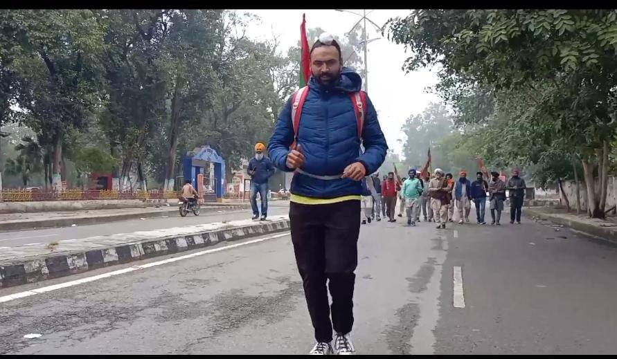 ਕਿਸਾਨਾਂ ਦੇ ਝੰਡੇ ਲੈ ਕੇ ਬੈਗ ਚੁੱਕ ਤੇ ਕਿਸਾਨ ਏਕਤਾ ਜ਼ਿੰਦਾਬਾਦ ਦੇ ਨਾਅਰੇ ਬੁਲੰਦ ਕਰਦੇ ਹੋਏ ਫਿਰੋਜ਼ਪੁਰ ਤੋਂ ਦਿੱਲੀ ਭੱਜ ਕੇ ਜਾਣ ਲਈ ਐਥਲੀਟ ਗੁਰਅੰਮ੍ਰਿਤ ਸਿੰਘ ਨੇ ਦੌੜ ਸ਼ੁਰੂ ਕਰ ਦਿੱਤੀ ਹੈ।