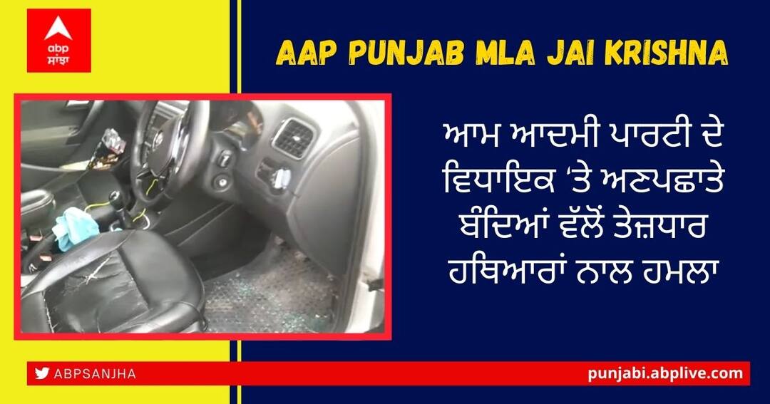 ਮਿਲੀ ਜਾਣਕਾਰੀ ਮੁਤਾਬਕ ਦੇਰ ਰਾਤ ਵਿਧਾਇਕ ਜੈ ਕ੍ਰਿਸ਼ਨ (MLA Jai Krishna) ਬੰਗਾ ਰੋਡ ‘ਤੇ ਸਥਿਤ ਨਿਰੰਕਾਰੀ ਭਵਨ ਨੇੜੇ ਆਪਣੇ ਘਰ ਪਰਤ ਰਹੇ ਸਨ ਤਾਂ ਉਨ੍ਹਾਂ ਦੀ ਗੱਡੀ ‘ਤੇ ਕੁਝ ਅਣਪਛਾਤੇ 4 ਬੰਦਿਆਂ ਨੇ ਤੇਜ਼ਧਾਰ ਹਥਿਆਰਾਂ ਨਾਲ ਹਮਲਾ ਕਰ ਦਿੱਤਾ, ਜਿਸ ਕਾਰਨ ਡਰਾਈਵਰ ਵਾਲੀ ਸਾਈਡ ਦੇ ਸ਼ੀਸ਼ੇ ਟੁੱਟ ਗਏ।