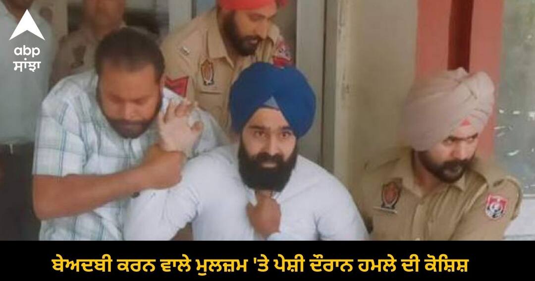 Ropar News : ਮੋਰਿੰਡਾ ਦੇ ਗੁਰਦੁਆਰਾ ਸ੍ਰੀ ਕੋਤਵਾਲੀ ਸਾਹਿਬ ਵਿਖੇ ਬੀਤੇ ਦਿਨੀਂ ਵਾਪਰੀ ਬੇਅਦਬੀ ਦੀ ਘਟਨਾ ਦੇ ਮੁਲਜ਼ਮ 'ਤੇ ਅਦਾਲਤ ਵਿਚ ਪੇਸ਼ੀ ਦੌਰਾਨ ਹਮਲੇ ਦੀ ਕੋਸ਼ਿਸ਼ ਕੀਤੀ ਗਈ ਹੈ। ਇਸ ਦੀਆਂ ਤਸਵੀਰਾਂ ਵੀ ਸਾਹਮਣੇ ਆਈਆਂ ਹਨ। ਪੁਲਿਸ ਨੇ ਵਿਅਕਤੀ ਨੂੰ ਮੌਕੇ ’ਤੇ ਹਿਰਾਸਤ ਵਿਚ ਲੈ ਲਿਆ ਹੈ। ਮਿਲੀ ਜਾਣਕਾਰੀ ਅਨੁਸਾਰ ਬੀਤੇ ਦਿਨੀਂ ਮੋਰਿੰਡਾ ਦੇ ਇਤਿਹਾਸਕ ਗੁਰਦੁਆਰਾ ਕੋਤਵਾਲੀ ਸਾਹਿਬ ਵਿੱਚ ਕੀਤੀ ਗਈ ਬੇਅਦਬੀ ਦੇ ਮਾਮਲੇ ਵਿੱਚ ਅੱਜ ਪੁਲਿਸ ਵੱਲੋਂ ਆਰੋਪੀ ਨੂੰ ਮੁੜ ਤੋਂ ਅਦਾਲਤ ਵਿੱਚ ਪੇਸ਼ ਕੀਤਾ ਗਿਆ ਸੀ। ਮੁਲਜ਼ਮ ਦੀ ਅਦਾਲਤ ਵਿਚ ਪੇਸ਼ੀ ਦੌਰਾਨ ਵਕੀਲ ਨੇ ਉਸ 'ਤੇ ਹਮਲੇ ਦੀ ਕੋਸ਼ਿਸ਼ ਕੀਤੀ। ਇਸ ਵਕੀਲ ਦੀ ਪਛਾਣ ਮੋਰਿੰਡਾ ਵਾਸੀ ਸਾਹਿਬ ਸਿੰਘ ਵਜੋਂ ਹੋਈ ਹੈ।