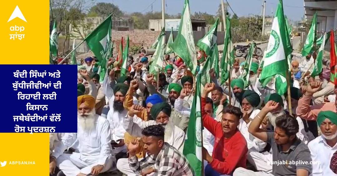 Barnala News: ਲੰਮੇ ਸਮੇਂ ਤੋਂ ਜੇਲ੍ਹਾਂ ਵਿੱਚ ਬੰਦ ਸਿੱਖਾਂ ਤੇ ਹੋਰ ਬੁੱਧੀਜੀਵੀਆਂ ਦੀ ਰਿਹਾਈ ਲਈ ਕਿਸਾਨ ਜਥੇਬੰਦੀਆਂ ਵੱਲੋਂ ਬਰਨਾਲਾ ਸ਼ਹਿਰ ਵਿੱਚ ਰੋਸ ਪ੍ਰਦਰਸ਼ਨ ਕੀਤਾ ਗਿਆ ਹੈ। ਕਿਸਾਨ ਜਥੇਬੰਦੀਆਂ ਵੱਲੋਂ ਆਮ ਆਦਮੀ ਪਾਰਟੀ ਦੇ ਨੁਮਾਇੰਦਿਆਂ ਨੂੰ ਮੰਗ ਪੱਤਰ ਸੌਂਪਿਆ ਗਿਆ ਹੈ। ਕਿਸਾਨ ਜਥੇਬੰਦੀਆਂ ਨੇ ਅੱਜ ਸੰਯੁਕਤ ਕਿਸਾਨ ਮੋਰਚਾ ਦੇ ਸੱਦੇ 'ਤੇ ਬੰਦੀ ਸਿੱਖਾਂ ਦੀ ਰਿਹਾਈ ਲਈ ਚੱਲ ਰਹੇ ਕੌਮੀ ਇਨਸਾਫ਼ ਮੋਰਚੇ ਦੇ ਸਮਰਥਨ 'ਚ ਪ੍ਰਦਰਸ਼ਨ ਕੀਤਾ ਹੈ। ਕਿਸਾਨ ਆਗੂਆਂ ਨੇ ਕਿਹਾ ਕਿ ਬੰਦੀ ਸਿੱਖ ਆਪਣੀ ਸਜ਼ਾ ਪੂਰੀ ਕਰ ਚੁੱਕੇ ਹਨ ਤੇ ਉਨ੍ਹਾਂ ਨੂੰ ਤੁਰੰਤ ਰਿਹਾਅ ਕੀਤਾ ਜਾਵੇ। ਇਸ ਦੇ ਨਾਲ ਹੀ ਕਿਹਾ ਕਿ ਸਰਕਾਰੀ ਜਬਰ ਵਿਰੁੱਧ ਲਿਖਣ ਵਾਲੇ ਬੁੱਧੀਜੀਵੀਆਂ ਨੂੰ ਗੈਰ-ਕਾਨੂੰਨੀ ਹਿਰਾਸਤ ਵਿੱਚ ਰੱਖਿਆ ਜਾ ਰਿਹਾ ਹੈ, ਉਨ੍ਹਾਂ ਨੂੰ ਵੀ ਰਿਹਾਅ ਕੀਤਾ ਜਾਵੇ।