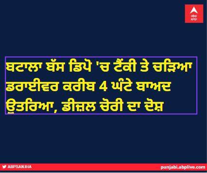 ਬਟਾਲਾ ਬੱਸ ਡਿਪੋ 'ਚ ਟੈਂਕੀ ਤੇ ਚੜਿਆ ਡਰਾਈਵਰ ਕਰੀਬ 4 ਘੰਟੇ ਬਾਅਦ ਉਤਰਿਆ, ਡੀਜ਼ਲ ਚੋਰੀ ਦਾ ਦੋਸ਼