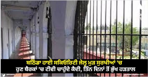 Bathinda Jail: ਬਠਿੰਡਾ ਜ਼ਿਲ੍ਹੇ ਦੀ ਹਾਈ ਸਕਿਓਰਿਟੀ ਜੇਲ੍ਹ ਮੁੜ ਸੁਰਖੀਆਂ ਵਿੱਚ ਆ ਗਈ ਹੈ। ਹੁਣ ਜੇਲ੍ਹ ਵਿੱਚ ਬੰਦ 50 ਕੈਦੀ ਤਿੰਨ ਦਿਨਾਂ ਤੋਂ ਭੁੱਖ ਹੜਤਾਲ ਉੱਪਰ ਬੈਠੇ ਹਨ। ਹੜਤਾਲੀ ਕੈਦੀਆਂ ਦੀ ਮੰਗ ਹੈ ਕਿ ਬੈਰਕਾਂ ਵਿੱਚ ਟੀਵੀ ਲਾਇਆ ਜਾਏ। ਇਹ ਹੜਤਾਲ ਕਰਨ ਵਾਲਿਆਂ ਵਿੱਚ ਨਾਭਾ ਜੇਲ੍ਹ ਬ੍ਰੇਕ ਕਾਂਡ ਦੇ ਮੁਲਜ਼ਮਾਂ ਸਮੇਤ ਹੋਰ ਕੈਦੀ ਸ਼ਾਮਲ ਹਨ। ਇਨ੍ਹਾਂ ਕੈਦੀਆਂ ਨੇ ਪਿਛਲੇ ਤਿੰਨ ਦਿਨਾਂ ਤੋਂ ਕੁਝ ਨਹੀਂ ਖਾਧਾ ਹੈ।