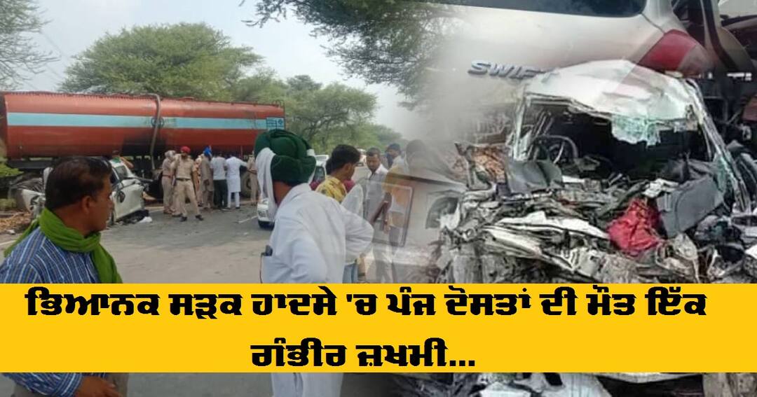 ਭਿਆਨਕ ਸੜਕ ਹਾਦਸੇ 'ਚ ਪੰਜ ਦੋਸਤਾਂ ਦੀ ਮੌਤ ਇੱਕ ਗੰਭੀਰ ਜ਼ਖਮੀ