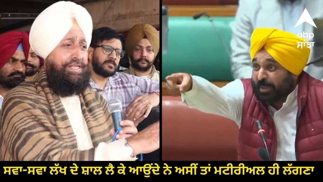 ਬਾਜਵਾ ਦਾ ਨਾਂਅ ਲਏ ਬਿਨਾਂ ਮਾਨ ਨੇ ਕਿਹਾ ਕਿ ਇਹ ਸਵਾ-ਸਵਾ ਲੱਖ ਦੇ ਸ਼ਾਲ ਲੈ ਕੇ ਆਉਂਦੇ ਨੇ ਤਾਂ ਅਸੀਂ ਤਾਂ ਮਟੀਰੀਅਲ ਹੀ ਲੱਗਣਾ, ਪਰ ਮੈਂ ਦੱਸਣਾ ਚਾਹੁੰਦਾ ਅਸੀਂ ਮਟੀਰੀਅਲ ਨਹੀਂ, ਸਾਡਾ ਵਿੱਤ ਮੰਤਰੀ ਵਕੀਲ ਹੈ, ਡਾ ਬਲਜੀਤ ਕੌਰ, ਡਾ ਚਰਨਜੀਤ ਚੰਨੀ ਤੇ ਡਾ ਬਲਬੀਰ ਸਿੰਘ ਮੰਨੇ ਬਹੁਤ ਮੰਨੇ ਹੋਏ ਡਾਕਟਰ ਹਨ। ਅਸੀਂ ਮਟੀਰੀਅਲ ਨਹੀਂ ਅਸੀਂ ਬਹੁਤ ਸਿਆਣੇ ਵੀ ਹਾਂ, ਸਾਨੂੰ ਦੋ ਸਾਲ ਹੋ ਗਏ ਸਰਕਾਰ ਚਲਾਉਂਦਿਆਂ ਨੂੰ ਪਰ ਅਸੀਂ ਤੁਹਾਡੇ ਖ਼ਜ਼ਾਨਾ ਮੰਤਰੀ ਵਾਂਗ ਕਦੇ ਨਹੀਂ ਕਿਹਾ ਕਿ ਖ਼ਜ਼ਾਨਾ ਖ਼ਾਲੀ ਹੈ ਸਾਡਾ ਖ਼ਜ਼ਾਨਾ ਵੀ ਭਰਿਆ ਸਾਡੀ ਨੀਅਤ ਵੀ ਭਰੀ ਹੈ।