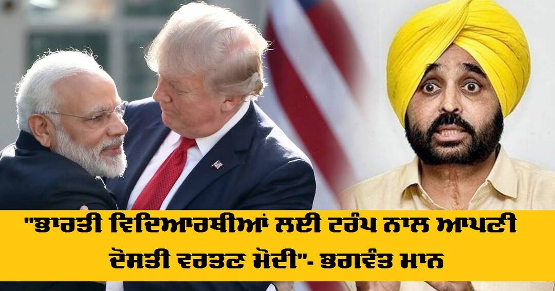 ਭਗਵੰਤ ਮਾਨ ਨੇ ਕਿਹਾ ਕਿ ਮੋਦੀ ਅਮਰੀਕੀ ਰਾਸ਼ਟਰਪਤੀ ਡੋਨਾਲਡ ਟਰੰਪ ਨਾਲ ਆਪਣੀ ‘ਦੋਸਤੀ’ ਵਰਤਣ ਅਤੇ ਯਕੀਨੀ ਬਣਾਉਣ ਕਿ ਇੱਕ ਵੀ ਭਾਰਤੀ ਵਿਦਿਆਰਥੀ ਨੂੰ ਟਰੰਪ ਪ੍ਰਸ਼ਾਸਨ ਜੋਰ-ਜਬਰਦਸਤੀ ਅਮੀਰਕਾ ਛੱਡਣ ਲਈ ਮਜਬੂਰ ਨਾ ਕਰੇ।