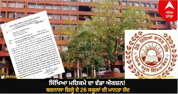 Barnala News: ਸਿੱਖਿਆ ਮਹਿਕਮੇ ਨੇ ਵੱਡਾ ਐਕਸ਼ਨ ਲਿਆ ਹੈ। ਜ਼ਿਲ੍ਹਾ ਸਿੱਖਿਆ ਅਫ਼ਸਰ ਵੱਲੋਂ ਜਾਰੀ ਹੁਕਮਾਂ ਅਨੁਸਾਰ ਜ਼ਿਲ੍ਹਾ ਬਰਨਾਲਾ ਦੇ 26 ਸਕੂਲਾਂ ਦੀ ਮਾਨਤਾ ਰੱਦ ਕਰ ਦਿੱਤੀ ਗਈ ਹੈ। ਸਿੱਖਿਆ ਵਿਭਾਗ ਦੇ ਪੱਤਰ ਅਨੁਸਾਰ ਸਾਲ 2023-24 ਲਈ ਬਿਲਡਿੰਗ ਸੇਫਟੀ, ਫਾਇਰ ਸੇਫਟੀ ਤੇ ਵਾਟਰ ਰਿਪੋਰਟ ਨਾ ਮਿਲਣ ਕਾਰਨ ਸਕੂਲਾਂ ਦੀ ਮਾਨਤਾ ਰੱਦ ਕਰਨ ਦੇ ਹੁਕਮ ਦਿੱਤੇ ਗਏ ਹਨ।
