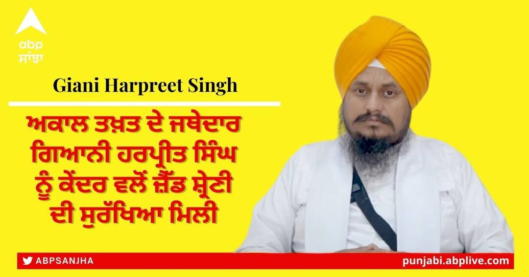 Giani Harpreet Singh Gets Z Category Security: ਪੰਜਾਬ ਦੇ ਹਾਲਾਤਾਂ ਦੇ ਮੱਦੇਨਜ਼ਰ ਕੇਂਦਰ ਸਰਕਾਰ ਨੇ ਅਕਾਲ ਤਖ਼ਤ ਦੇ ਜਥੇਦਾਰ ਗਿਆਨੀ ਹਰਪ੍ਰੀਤ ਸਿੰਘ ਨੂੰ ਜ਼ੈੱਡ ਸ਼੍ਰੇਣੀ ਦੀ ਸੁਰੱਖਿਆ ਮੁਹੱਈਆ ਕਰਵਾਈ ਹੈ। ਜਥੇਦਾਰ ਹਰਪ੍ਰੀਤ ਸਿੰਘ ਨੂੰ ਸੀਆਰਪੀਐਫ ਵੱਲੋਂ ਇਹ ਸੁਰੱਖਿਆ ਮੁਹੱਈਆ ਕਰਵਾਈ ਜਾਵੇਗੀ। ਇਸ ਸਬੰਧੀ ਅਧਿਕਾਰਤ ਹੁਕਮ ਜਾਰੀ ਕਰ ਦਿੱਤੇ ਗਏ ਹਨ।