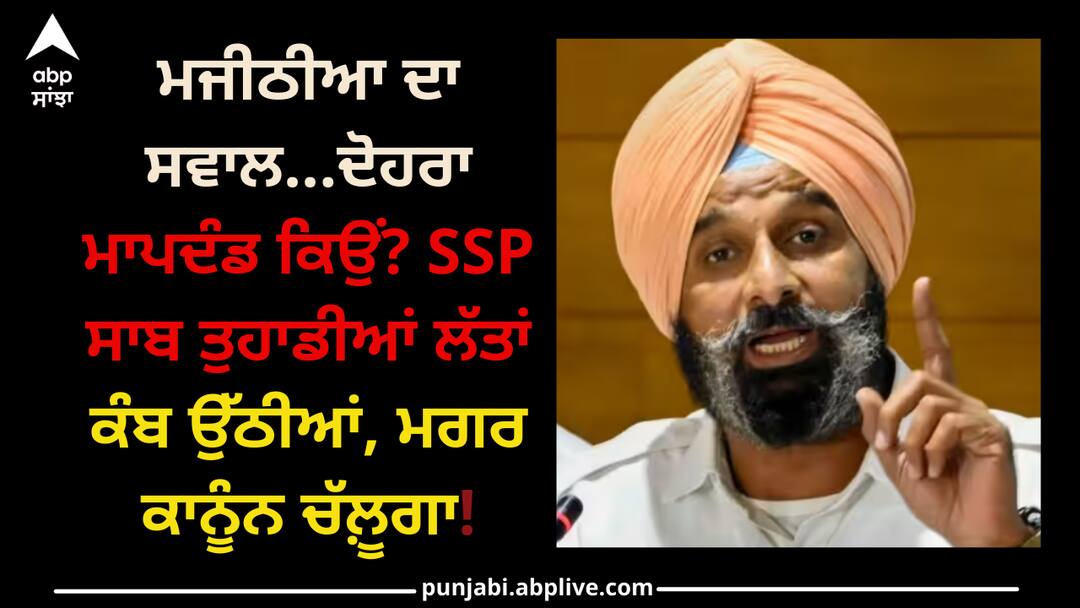 ਬਿਕਰਮ ਮਜੀਠੀਆ ਨੇ ਟਵੀਟ ਕਰਕੇ ਕਿਹਾ...ਕਿਹੜੇ ਕਾਨੂੰਨ ਦਾ ਸਹਾਰਾ ਲਏ ਰਹੇ ਹੋ SSP ਸਾਬ ? ਤੁਸੀਂ suicide ਨੋਟ ਤੇ ਪਰਚਾ ਦਰਜ ਨਹੀਂ ਕਰ ਰਹੇ ? ਤੁਹਾਡੀ ਮਜਬੂਰੀ ਕੀ ਹੈ ? ਦੋਹਰਾ ਮਾਪਦੰਡ ਕਿਉਂ? SSP ਸਾਬ ਤੁਹਾਡੀ ਲੱਤਾਂ ਕੰਬ ਉੱਠੀਆਂ ਨੇ, ਮਗਰ ਕਾਨੂੰਨ ਚੱਲ਼ੂਗਾ !ਕਾਨੂੰਨ ਪ੍ਰਧਾਨ ਮੰਤਰੀ ਲਈ ਉਹੋ, ਮੰਤਰੀ ਲਈ ਵੀ ਤੇ ਸੰਤਰੀ ਲਈ ਵੀ ਉਹੀ ਆ। ਤੁਸੀਂ ਕਾਨੂੰਨ ਲਾਗੂ ਕਰਨ ਤੋਂ ਘਬਰਾਅ ਰਹੇ ਹੋ!!!#JusticeFor1158 @1158APFront5aab @DGPPunjabPolice @BhagwantMann @harjotbains