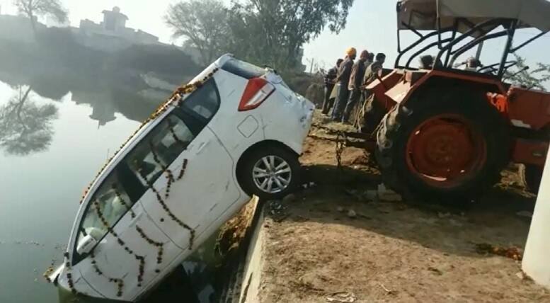 ਲਾੜਾ-ਲਾੜੀ ਸਮੇਤ ਡੋਲੀ ਵਾਲੀ ਕਾਰ ਛੱਪੜ 'ਚ ਡਿੱਗੀ