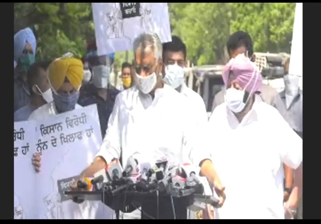 ਚੰਡੀਗੜ੍ਹ: ਕੇਂਦਰ ਸਰਕਾਰ ਵੱਲੋਂ ਸੰਸਦ ਵਿੱਚ ਪੇਸ਼ ਖੇਤੀ ਬਿੱਲਾਂ ਦੇ ਵਿਰੋਧ ਵਿੱਚ ਮੁੱਖ ਮੰਤਰੀ ਕੈਪਟਨ ਅਮਰਿੰਦਰ ਸਿੰਘ ਦੀ ਅਗਵਾਈ ਹੇਠ ਵਫਦ ਰਾਜਪਾਲ ਨੂੰ ਮਿਲਿਆ। ਇਸ ਵਫਦ ’ਚ ਮੁੱਖ ਮੰਤਰੀ ਤੋਂ ਇਲਾਵਾ ਪੰਜਾਬ ਪ੍ਰਦੇਸ਼ ਕਾਂਗਰਸ ਪ੍ਰਧਾਨ ਸੁਨੀਲ ਜਾਖੜ, ਕੁਝ ਕੈਬਨਿਟ ਮੰਤਰੀ ਤੇ ਵਿਧਾਇਕ ਸ਼ਾਮਲ ਸਨ। ਵਫਦ ਨੇ ਰਾਜਪਾਲ ਨੂੰ ਮੰਗਪੱਤਰ ਸੌਂਪ ਕੇ ਖੇਤੀ ਬਿੱਲ ਵਾਪਸ ਲੈਣ ਦੀ ਅਪੀਲ ਕੀਤੀ ਹੈ। ਕੈਪਟਨ ਅਮਰਿੰਦਰ ਸਿੰਘ ਨੇ ਪੰਜਾਬ ਦੇ ਕਿਸਾਨਾਂ ਨੂੰ ਕਿਹਾ ਕਿ ਪੰਜਾਬ ਦੀਆਂ ਸੜਕਾਂ 'ਤੇ ਬੈਠਣ ਨਾਲ ਖੇਤੀ ਆਰਡੀਨੈਂਸ ਦਾ ਮਸਲਾ ਹੱਲ ਨਹੀਂ ਹੋਵੇਗਾ। ਉਨ੍ਹਾਂ ਕਿਸਾਨਾਂ ਨੂੰ ਦਿੱਲੀ ਵੱਲ ਕੂਚ ਕਰਨ ਲਈ ਕਿਹਾ। ਉਨ੍ਹਾਂ ਕਿਹਾ ਤੁਸੀਂ ਦਿੱਲੀ ਚੱਲੋ, ਮੈਂ ਵੀ ਤੁਹਾਡੇ ਨਾਲ ਚੱਲਾਂਗਾ। ਕੈਪਟਨ ਨੇ ਇਹ ਵੀ ਕਿਹਾ ਕਿ ਪੰਜਾਬ ਦੀ ਸਰਹੱਦ ਪਾਕਿਸਤਾਨ ਨਾਲ ਲੱਗਦੀ ਹੈ। ਇਸ ਲਈ ਲੋਕਾਂ ਦੀ ਨਾਰਾਜ਼ਗੀ ਦਾ ਫਾਇਦਾ ਚੁੱਕ ਕੇ ਪਾਕਿਸਤਾਨ ਅਮਨ ਸ਼ਾਂਤੀ ਭੰਗ ਕਰਨ ਦੀ ਸ਼ਰਾਰਤ ਕਰ ਸਕਦਾ ਹੈ। ਕੈਪਟਨ ਨੇ ਖੇਤੀ ਸ਼ੋਧ ਬਿੱਲ ਨੂੰ ਪੇਸ਼ ਕਰਨ ਤੋਂ ਪਹਿਲਾ ਪੰਜਾਬ ਨੂੰ ਭਰੋਸੇ ’ਚ ਲੈਣ ਦੇ ਕੀਤੇ ਗਏ ਦਾਅਵੇ ਨੂੰ ਰੱਦ ਕਰਦਿਆਂ ਪ੍ਰਧਾਨ ਮੰਤਰੀ ਨੂੰ ਅਪੀਲ ਕੀਤੀ ਕਿ ਉਹ ਇਸ ਨੂੰ ਕਾਨੂੰਨ ਬਣਾਉਣ ਲਈ ਅੱਗੇ ਨਾ ਵਧਣ। ਉਨ੍ਹਾਂ ਕਿਹਾ ਕਿ ਇਹ ਬਿੱਲ ਕਿਸਾਨਾਂ ਲਈ ਘਾਤਕ ਸਾਬਤ ਹੋਣਗੇ। ਮੁੱਖ ਮੰਤਰੀ ਨੇ ਕਿਹਾ ਕਿ ਇਨ੍ਹਾਂ ਆਰਡੀਨੈਂਸਾਂ ਦੀ ਪੈਰਵੀ ਨਾ ਕੀਤੀ ਜਾਵੇ ਤੇ ਘੱਟੋ-ਘੱਟ ਸਮਰਥਨ ਮੁੱਲ (ਐਮਐਸਪੀ) ਨੂੰ ਕਿਸਾਨਾਂ ਦਾ ਕਾਨੂੰਨੀ ਹੱਕ ਬਣਾਇਆ ਜਾਵੇ। ਇਸ ਮੌਕੇ ਖੁਰਾਕ, ਉਪਭੋਗਤਾ ਮਾਮਲੇ ਤੇ ਜਨਤਕ ਵੰਡ ਬਾਰੇ ਕੇਂਦਰੀ ਰਾਜ ਮੰਤਰੀ ਰਾਓਸਾਹੇਬ ਪਾਟਿਲ ਦਾਨਵੇ ਵੱਲੋਂ ਸੰਸਦ ’ਚ ਦਿੱਤੇ ਬਿਆਨ ਕਿ ਸਾਰੇ ਮੈਂਬਰ ਰਾਜਾਂ ਦੀ ਸਹਿਮਤੀ ਤੋਂ ਬਾਅਦ ਹੀ ਖੇਤੀਬਾੜੀ ਬਾਰੇ ਉਚ ਤਾਕਤੀ ਕਮੇਟੀ ਨੇ ਆਰਡੀਨੈਸਾਂ ਬਾਰੇ ਫੈਸਲਾ ਕੀਤਾ ਹੈ ’ਤੇ ਮੁੱਖ ਮੰਤਰੀ ਨੇ ਕਿਹਾ ਕਿ ਜਿਸ ਗੁਪਤ ਢੰਗ ਨਾਲ ਆਰਡੀਨੈਂਸਾਂ ਨੂੰ ਪੇਸ਼ ਕੀਤਾ ਗਿਆ, ਉਸ ਤੋਂ ਸਾਫ਼ ਜ਼ਾਹਰ ਹੁੰਦਾ ਹੈ ਕਿ ਕੇਂਦਰ ਸਰਕਾਰ ਦਾ ਕਿਸਾਨਾਂ ਦੇ ਹਿੱਤਾਂ ਦੀ ਰਾਖੀ ਦਾ ਕੋਈ ਇਰਾਦਾ ਨਹੀਂ ਸੀ ਤੇ ਉਹ ਸ਼ਾਂਤਾ ਕੁਮਾਰ ਕਮੇਟੀ ਦੀ ਰਿਪੋਰਟ ਲਾਗੂ ਕਰਨ ’ਤੇ ਤੁਲੀ ਹੋਈ ਸੀ, ਜਿਸ ਨੇ ਐਮਐਸਪੀ ਨੂੰ ਹੌਲੀ-ਹੌਲੀ ਵਾਪਸ ਲੈਣ ਅਤੇ ਐਫਸੀਆਈ ਨੂੰ ਖਤਮ ਕਰਨ ਦੀ ਸਿਫਾਰਸ਼ ਕੀਤੀ ਸੀ। ਕੈਪਟਨ ਅਮਰਿੰਦਰ ਸਿੰਘ ਨੇ ਕਿਹਾ ਕਿ ਆਰਡੀਨੈਂਸ ਪੰਜਾਬ ਨੂੰ ਮਨਜ਼ੂਰ ਨਹੀਂ ਹਨ ਤੇ ਖੇਤੀਬਾੜੀ ਦੇ ਰਾਜ ਦਾ ਵਿਸ਼ਾ ਹੋਣ ਕਰਕੇ ਇਹ ਸੰਘੀ ਢਾਂਚੇ ਦੇ ਖਿਲਾਫ਼ ਵੀ ਹਨ। ਕੈਪਟਨ ਨੇ ਕੇਂਦਰ ਸਰਕਾਰ ਦੇ ਉਸ ਦਾਅਵੇ ਨੂੰ ਰੱਦ ਕਰ ਦਿੱਤਾ ਜਿਸ ਮੁਤਾਬਕ ਸੰਸਦ ਵਿੱਚ ਖੇਤੀਬਾੜੀ ਨਾਲ ਸਬੰਧਤ ਆਰਡੀਨੈਂਸ ਪੇਸ਼ ਕਰਨ ਤੋਂ ਪਹਿਲਾਂ ਪੰਜਾਬ ਸਰਕਾਰ ਨਾਲ ਵਿਚਾਰ-ਵਟਾਂਦਰਾ ਕੀਤਾ ਗਿਆ ਸੀ।