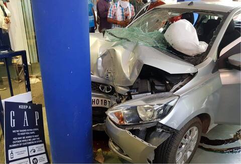 ਸ਼ੋਅਰੂਮ ਦੇ ਬਾਹਰ ਇੱਕ ਸਰਕਟ ਦੇ ਸੀਸੀਟੀਵੀ ਕੈਮਰਾ ਤੋਂ ਮਿਲੀ ਫੁਟੇਜ ਦਰਸਾਉਂਦੀ ਹੈ ਕਿ ਕਾਰ ਫੁਟਪਾਥ ਤੋਂ ਪਾਰ ਪਾਰਕਿੰਗ ਵਾਲੀ ਥਾਂ ਵਿੱਚ ਖੜੀ ਸੀ।