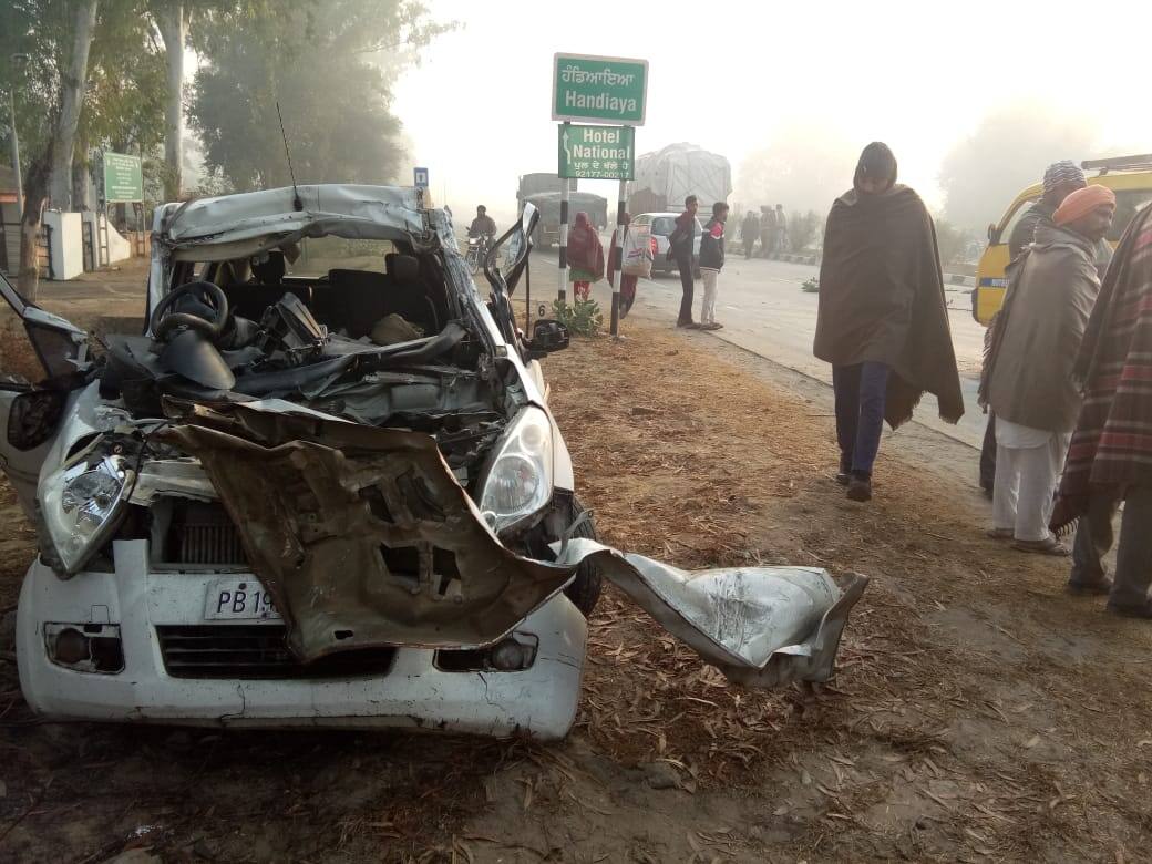 ਬਠਿੰਡਾ: ਅੱਜ ਸਵੇਰੇ ਸੰਘਣੀ ਧੁੰਦ ਹੋਣ ਕਰਕੇ ਬਰਨਾਲਾ ਦੇ ਹੰਡਿਆਇਆ ਨੇੜੇ ਇੱਕ ਰਿਟਜ਼ ਕਾਰ ਅਤੇ ਟੱਰਕ ਦੀ ਟਕੱਰ ਹੋਈ। ਜਿਸ ਟਕੱਰ ‘ਚ ਕਾਰ ‘ਚ ਸਵਾਰ ਚਾਰ ਪੁਲਿਸ ਮੁਲਾਜ਼ਮਾਂ ਚੋਂ ਦੋ ਦੀ ਮੌਕੇ ‘ਤੇ ਮੌਤ ਹੋ ਗਈ ਅਤੇ ਦੋ ਨੂੰ ਗੰਭੀਰ ਹਾਲਤ ‘ਚ ਬਠਿੰਡਾ ਦੇ ਆਦੇਸ਼ ਹਸਪਤਾਲ ‘ਚ ਰੈਫਰ ਕੀਤਾ ਗਿਆ ਹੈ। ਕਾਰ ਹਾਈਵੇਅ ‘ਤੇ ਕਪਾਹ ਨਾਲ ਭਰੇ ਟੱਰਕ ਨਾਲ ਟਕੱਰਾਈ ਜਿਸ ‘ਚ ਏਐਸਆਈ ਗੁਰਮੀਤ ਸਿੰਘ ੳਤੇ ਮਲਕੀਤ ਸਿੰਘ ਦੀ ਮੌਕੇ ‘ਤੇ ਮੌਤ ਹੋ ਗਈ, ਜਦਕਿ ਏਐਸਆਈ ਸਾਧੁ ਸਿੰਘ ਅਤੇ ਰਸ਼ਪਾਲ ਸਿੰਘ ਜ਼ਖ਼ਮੀ ਹੋਏ ਹਨ। ਇਹ ਚਾਰੋ ਵੀਆਈਪੀ ਡਿਊਟੀ ਕਰਨ ਬਠਿੰਡਾ ਤੋਂ ਪਟਿਆਲਾ ਜਾ ਰਹੇ ਸੀ ਜਿੱਥੇ ਪੰਜਾਬ ਦੇ ਮੁੱਖ ਮੰਤਰੀ ਕੈਪਟਨ ਅਮਰਿੰਦਰ ਸਿੰਘ ਦਾ ਅੱਜ ਪ੍ਰੋਗ੍ਰਾਮ ਹੈ। ਇਹ ਭਿਆਨਕ ਹਾਦਸਾ ਹੰਡਿਆਇਆ ਬਿਜਲੀ ਗਰਿੱਡ ਕੋਲ ਹੋਇਆ। ਪੁਲਿਸ ਨੇ ਮਾਮਲੇ ਦੀ ਜਾਂਚ ਸ਼ੁਰੂ ਕਰ ਦਿੱਤੀ ਹੈ। ਮੁਲਜ਼ਮ ਟੱਰਕ ਡਰਾਈਵਰ ਖਿਲਾਫ ਮਾਮਲਾ ਦਰਜ ਕਰ ਅੱਗੇ ਦੀ ਕਾਰਵਾਈ ਸ਼ੁਰੂ ਕਰ ਦਿੱਤੀ ਗਈ ਹੈ।
