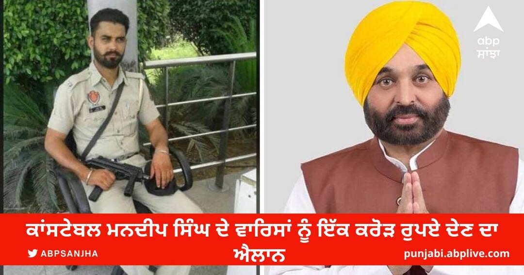 ਮੁੱਖ ਮੰਤਰੀ ਭਗਵੰਤ ਮਾਨ ਨੇ ਆਪਣੇ ਟਵਿੱਟਰ ਅਕਾਊਂਟ 'ਤੇ ਪੋਸਟ ਸਾਂਝੀ ਕਰਦਿਆਂ ਲਿਖਿਆ ਕਿਹਾ ਕਿ ਸ਼ਹੀਦ ਕਾਂਸਟੇਬਲ ਮਨਦੀਪ ਸਿੰਘ ਨੂੰ ਸਲਾਮ, ਜਿਨ੍ਹਾਂ ਨੇ ਡਿਊਟੀ ਦੌਰਾਨ ਸਭ ਤੋਂ ਵੱਡੀ ਕੁਰਬਾਨੀ ਦਿੱਤੀ। ਮੁੱਖ ਮੰਤਰੀ ਨੇ ਕਿਹਾ ਕਿ ਪੀੜਤ ਪਰਿਵਾਰ ਨੂੰ ਪੰਜਾਬ ਸਰਕਾਰ 1 ਕਰੋੜ ਰੁਪਏ ਦੀ ਅਦਾਇਗੀ ਕਰੇਗੀ ਤੇ ਐਚਡੀਐਫਸੀ ਬੈਂਕ ਵੱਲੋਂ 1 ਕਰੋੜ ਰੁਪਏ ਦਾ ਹੋਰ ਬੀਮਾ ਭੁਗਤਾਨ ਕੀਤਾ ਜਾਵੇਗਾ।
