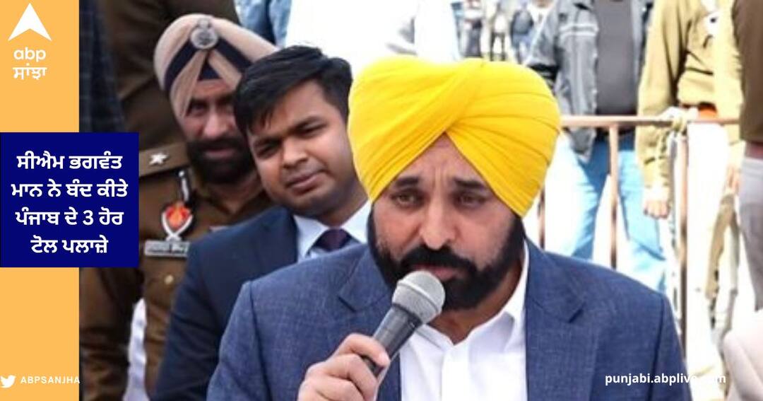 Punjab News: ਪੰਜਾਬ ਦੇ ਮੁੱਖ ਮੰਤਰੀ ਭਗਵੰਤ ਮਾਨ ਨੇ ਅੱਜ ਆਮ ਲੋਕਾਂ ਨੂੰ ਵੱਡੀ ਰਾਹਤ ਦਿੰਦਿਆਂ ਸੂਬੇ ਦੇ 3 ਹੋਰ ਟੋਲ ਪਲਾਜ਼ੇ ਬੰਦ ਕਰ ਦਿੱਤੇ ਹਨ। ਇਸ ਦੌਰਾਨ ਪੰਜਾਬ ਦੇ ਮੁੱਖ ਮੰਤਰੀ ਭਗਵੰਤ ਮਾਨ ਨੇ ਟਵੀਟ ਕਰਦਿਆਂ ਜਾਣਕਾਰੀ ਦਿੱਤੀ ਹੈ ਕਿ ਲੋਕ ਹਿੱਤ ਵਿੱਚ ਇੱਕ ਹੋਰ ਵੱਡਾ ਫ਼ੈਸਲਾ...ਅੱਜ ਪੰਜਾਬ ਦੇ 3 ਹੋਰ ਟੋਲ ਪਲਾਜ਼ੇ ਬੰਦ ਕਰਨ ਜਾ ਰਹੇ ਹਾਂ। ਇਨ੍ਹਾਂ ਵਿੱਚੋਂ ਦੋ ਟੋਲ ਪਲਾਜ਼ੇ ਹੁਸ਼ਿਆਰਪੁਰ ਜ਼ਿਲ੍ਹੇ ਵਿੱਚ ਤੇ ਇੱਕ ਨਵਾਂਸ਼ਹਿਰ ਵਿਚ ਹੈ। ਤਿੰਨੇ ਟੋਲ ਪਲਾਜ਼ੇ ਇੱਕੋ ਕੰਪਨੀ ਦੇ ਹਨ।
