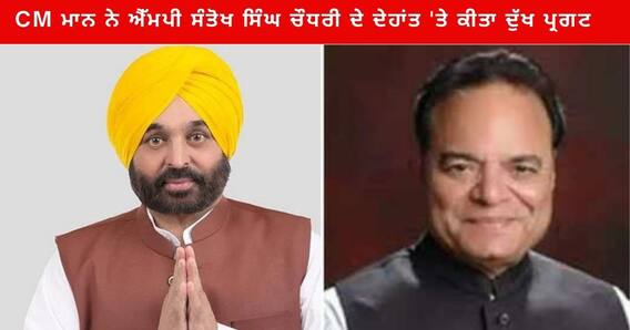 Punjab News : ਪੰਜਾਬ ਦੇ ਮੁੱਖ ਮੰਤਰੀ ਭਗਵੰਤ ਮਾਨ ਨੇ ਜਲੰਧਰ ਤੋਂ ਕਾਂਗਰਸੀ ਸੰਸਦ ਮੈਂਬਰ ਸੰਤੋਖ ਸਿੰਘ ਚੌਧਰੀ ਦੇ ਦੇਹਾਂਤ 'ਤੇ ਦੁੱਖ ਦਾ ਪ੍ਰਗਟਾਵਾ ਕੀਤਾ ਹੈ। ਮੁੱਖ ਮੰਤਰੀ ਮਾਨ ਨੇ ਟਵੀਟ ਕਰਕੇ ਕਿਹਾ ਕਿ ਉਹ ਜਲੰਧਰ ਤੋਂ ਕਾਂਗਰਸੀ ਸੰਸਦ ਮੈਂਬਰ ਸੰਤੋਖ ਸਿੰਘ ਚੌਧਰੀ ਦੇ ਬੇਵਕਤੀ ਦੇਹਾਂਤ 'ਤੇ ਡੂੰਘੇ ਦੁੱਖ ਵਿਚ ਹਨ। ਪ੍ਰਮਾਤਮਾ ਵਿੱਛੜੀ ਰੂਹ ਨੂੰ ਸਕੂਨ ਬਖ਼ਸ਼ੇ .. ਵਾਹਿਗੁਰੂ