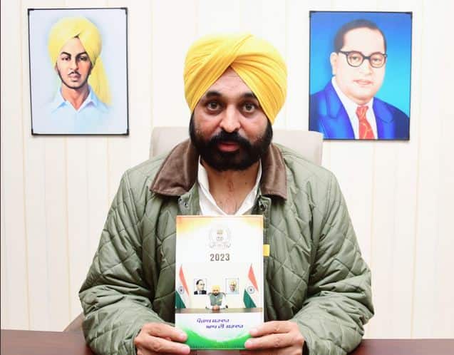 ਦਰਅਸਲ ਹੁਣ ਤੱਕ ਸਰਕਾਰੀ ਡਾਇਰੀ 'ਤੇ ਪੰਜਾਬ ਸਰਕਾਰ ਦਾ ਲੋਗੋ ਹੀ ਲੱਗਾ ਹੁੰਦਾ ਸੀ। ਇਸ ਵਾਰ ਸੀਐਮ ਭਗਵੰਤ ਮਾਨ ਨੇ ਆਪਣੀ ਫੋਟੋ ਛਪਵਾਈ ਹੈ। ਉਨ੍ਹਾਂ ਨੇ ਸ਼ਹੀਦੇ-ਆਜ਼ਮ ਭਗਤ ਸਿੰਘ ਤੇ ਸੰਵਿਧਾਨ ਦੇ ਨਿਰਮਾਤਾ ਡਾਕਟਰ ਭੀਮ ਰਾਓ ਅੰਬੇਡਕਰ ਦੀ ਫੋਟੋ ਦੇ ਵਿਚਕਾਰ ਆਪਣੀ ਫੋਟੋ ਲਗਾਈ ਹੈ।