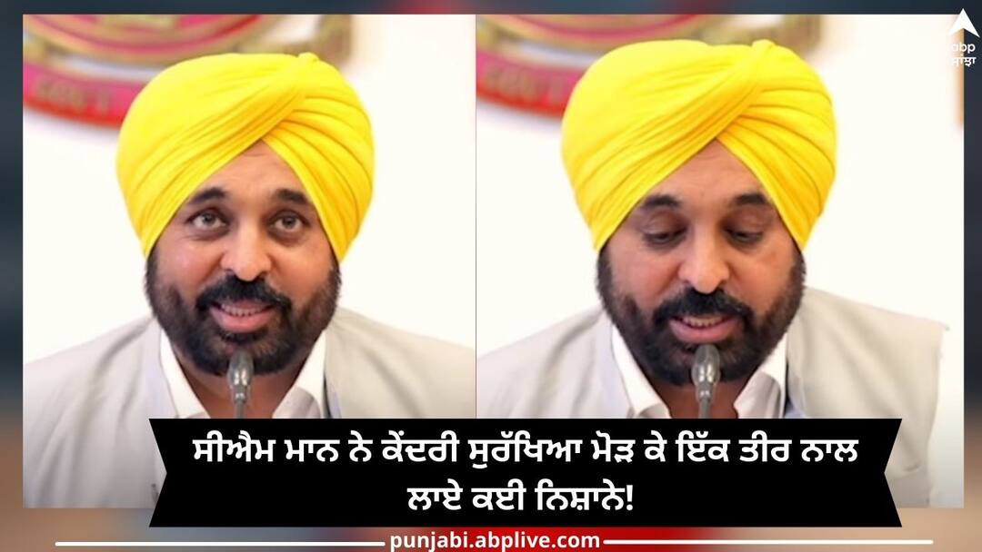 CM Bhagwant Mann Z Plus Security: ਮੁੱਖ ਮੰਤਰੀ ਭਗਵੰਤ ਮਾਨ ਨੇ ਕੇਂਦਰ ਸਰਕਾਰ ਵੱਲੋਂ ਦਿੱਤੀ ਜ਼ੈੱਡ ਪਲੱਸ ਸੁਰੱਖਿਆ ਲੈਣ ਤੋਂ ਇਨਕਾਰ ਕਰਕੇ ਇੱਕ ਤੀਰ ਨਾਲ ਕਈ ਨਿਸ਼ਾਨੇ ਲਾਏ ਹਨ। ਕੇਂਦਰੀ ਸੁਰੱਖਿਆ ਮਿਲਣ ਕਰਕੇ ਸੀਐਮ ਭਗਵੰਤ ਮਾਨ ਉੱਪਰ ਸਵਾਲ ਉੱਠਣ ਲੱਗੇ ਸੀ। ਇਸ ਲਈ ਵਿਰੋਧੀਆਂ ਨੂੰ ਚੁੱਪ ਕਰਾਉਣ ਲਈ ਉਨ੍ਹਾਂ ਨੇ ਸਹੀ ਸਮੇਂ ਸਹੀ ਪੈਂਤੜਾ ਖੇਡਿਆ ਹੈ। ਦੂਜੇ ਪਾਸੇ ਉਨ੍ਹਾਂ ਨੇ ਸੁਰੱਖਿਆ ਮੋੜ ਕੇ ਇਹ ਵੀ ਸੰਕੇਤ ਦਿੱਤਾ ਹੈ ਕਿ ਬੀਜੇਪੀ ਨਾਲ ਲੜਾਈ ਜਾਰੀ ਰਹੇਗੀ।
