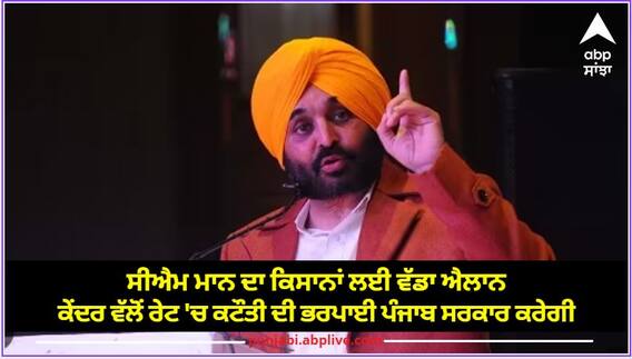 Punjab News: ਮੁੱਖ ਮੰਤਰੀ ਭਗਵੰਤ ਮਾਨ ਨੇ ਪੰਜਾਬ ਦੇ ਕਿਸਾਨਾਂ ਲਈ ਵੱਡਾ ਐਲਾਨ ਕੀਤਾ ਹੈ। ਉਨ੍ਹਾਂ ਨੇ ਕਿਹਾ ਹੈ ਕਿ ਕੇਂਦਰ ਸਰਕਾਰ ਵੱਲੋਂ ਕਣਕ ਦੇ ਦਾਣੇ 'ਚ ਨਮੀ ਤੇ ਦਾਣਾ ਛੋਟਾ ਹੋਣ ਕਰਕੇ ਕਣਕ ਦੇ ਭਾਅ 'ਚ ਜੋ ਕੱਟ ਲਾਇਆ ਗਿਆ ਹੈ, ਉਸ ਦਾ ਖ਼ਰਚਾ ਪੰਜਾਬ ਸਰਕਾਰ ਆਪਣੇ ਪੱਲਿਓਂ ਕਰੇਗੀ।