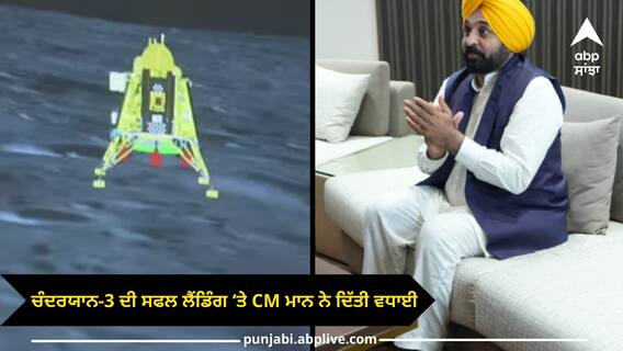 ਸੀਐਮ ਮਾਨ ਨੇ ਕਿਹਾ ਕਿ ਚੰਦਰਯਾਨ-3 ਦੀ ਚੰਦਰਮਾ ਦੀ ਸਤ੍ਹਾ 'ਤੇ ਸਫਲ ਲੈਂਡਿੰਗ ਲਈ ਸਾਰਿਆਂ ਨੂੰ ਦਿਲੋਂ ਵਧਾਈਆਂ। ਭਾਰਤ ਨੇ ਅੱਜ ਇਤਿਹਾਸ ਰੱਚ ਦਿੱਤਾ ਹੈ। ਸਾਡੇ @isro ਦੇ ਵਿਗਿਆਨੀਆਂ ਸਮੇਤ ਸਾਰੇ ਸਟਾਫ਼ ਨੂੰ ਉਨ੍ਹਾਂ ਦੀ ਲਗਨ ਅਤੇ ਮਿਹਨਤ ਲਈ ਸ਼ੁਭਕਾਮਨਾਵਾਂ। ਇਹ ਦੇਸ਼ ਦੇ ਹਰ ਨਾਗਰਿਕ ਲਈ ਮਾਣ ਵਾਲੀ ਗੱਲ ਹੈ।
