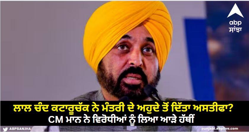 CM Mann On Lal Chand Kataruchak Resign News: ਪੰਜਾਬ ਵਿੱਚ ਭਾਜਪਾ (BJP) ਆਗੂ ਮਨਜਿੰਦਰ ਸਿੰਘ ਸਿਰਸਾ (Manjinder Singh Sirsa) ਨੇ ਦਾਅਵਾ ਕੀਤਾ ਹੈ ਕਿ ਭਗਵੰਤ ਮਾਨ ਸਰਕਾਰ ਵਿੱਚ ਮੰਤਰੀ ਰਹੇ ਲਾਲ ਚੰਦ ਕਟਾਰੂਚੱਕ ਨੇ ਇਤਰਾਜ਼ਯੋਗ ਵੀਡੀਓ ਸਾਹਮਣੇ ਆਉਣ ਤੋਂ ਬਾਅਦ ਆਪਣੇ ਅਹੁਦੇ ਤੋਂ ਅਸਤੀਫ਼ਾ ਦੇ ਦਿੱਤਾ ਹੈ। ਇਸ 'ਤੇ ਮੁੱਖ ਮੰਤਰੀ ਭਗਵੰਤ ਮਾਨ (CM Bhagwant Mann) ਨੇ ਬੇਬੁਨਿਆਦ ਦੋਸ਼ ਲਾਉਣ ਲਈ ਮਨਜਿੰਦਰ ਸਿਰਸਾ ਦੇ ਨਾਲ-ਨਾਲ ਕਾਂਗਰਸੀ (Congress) ਵਿਧਾਇਕ ਸੁਖਪਾਲ ਸਿੰਘ ਖਹਿਰਾ (Sukhpal Singh Khaira) 'ਤੇ ਨਿਸ਼ਾਨਾ ਸਾਧਿਆ ਹੈ। ਸੀਐਮ ਮਾਨ ਨੇ ਕਿਹਾ, 'ਮੈਨੂੰ ਕਿਸੇ ਨੇ ਅਸਤੀਫਾ ਦਿੱਤਾ ਹੈ। ਸਿਰਸਾ ਤੇ ਸੁਖਪਾਲ ਖਹਿਰਾ ਕੋਲ ਹੋਰ ਕੋਈ ਕੰਮ ਨਹੀਂ। ਜਲੰਧਰ ਜ਼ਿਮਨੀ ਚੋਣ ਕਾਰਨ ਉਹ ਬੋਖਲਾ ਗਏ ਹਨ। ਇਸੇ ਲਈ ਇਹ ਸਾਰੇ ਬਿਆਨ ਦਿੱਤੇ ਜਾ ਰਹੇ ਹਨ।'