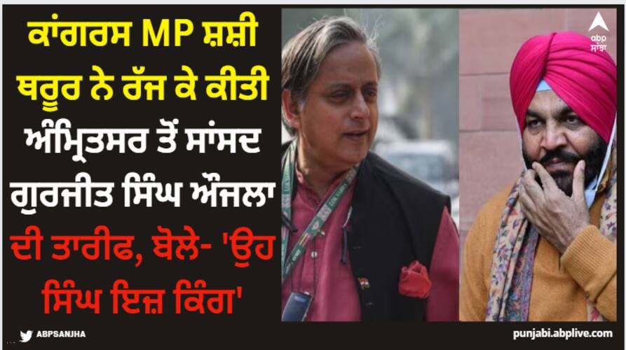 Shashi Tharoor Praises Gurjeet SIngh Aujla: ਕਾਂਗਰਸ ਸਾਂਸਦ ਸ਼ਸ਼ੀ ਥਰੂਰ ਨੇ ਪਾਰਟੀ ਸਾਂਸਦ ਗੁਰਜੀਤ ਸਿੰਘ ਔਜਲਾ ਦੀ ਰੱਜ ਕੇ ਤਾਰੀਫ ਕੀਤੀ ਹੈ। ਉਨ੍ਹਾਂ ਕਿਹਾ ਕਿ ਜਿਸ ਤਰ੍ਹਾਂ ਔਜਲਾ ਨੇ ਪਾਰਲੀਮੈਂਟ ਵਿੱਚ ਦਾਖ਼ਲ ਹੋਏ ਮੁਲਜ਼ਮਾਂ ਨੂੰ ਫੜਿਆ ਹੈ, ਉਸ ਤੋਂ ਪਤਾ ਲੱਗਦਾ ਹੈ ਕਿ ਉਹ ਸਿੰਘ ਇਜ਼ ਕਿੰਗ ਹਨ ਹਨ। ਦੱਸ ਦਈਏ ਕਿ ਲੋਕ ਸਭਾ 'ਚ ਦਾਖਲ ਹੋਏ ਦੋਸ਼ੀਆਂ ਨੂੰ ਸਭ ਤੋਂ ਪਹਿਲਾਂ ਕਾਂਗਰਸ ਦੇ ਸੰਸਦ ਮੈਂਬਰ ਗੁਰਜੀਤ ਸਿੰਘ ਔਜਲਾ ਨੇ ਫੜਿਆ ਸੀ।