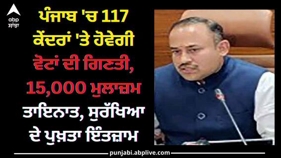 Lok Sabha Election Result: ਪੰਜਾਬ ਵਿਚ ਲੋਕ ਸਭਾ ਵੋਟਾਂ ਦੀ ਗਿਣਤੀ 4 ਜੂਨ ਨੂੰ ਸਵੇਰੇ 8 ਵਜੇ ਤੋਂ ਸ਼ੁਰੂ ਹੋਵੇਗੀ। ਸੂਬੇ ਦੇ 48 ਭਵਨਾਂ ਤੇ 27 ਥਾਵਾਂ ‘ਤੇ ਕੁੱਲ 117 ਗਿਣਤੀ ਕੇਂਦਰ ਸਥਾਪਤ ਕੀਤੇ ਗਏ ਹਨ। ਲਗਭਗ 15,000 ਮੁਲਾਜ਼ਮਾਂ ਦੀ ਡਿਊਟੀ ਕਾਊਂਟਿੰਗ ਵਿਚ ਲਗਾਈ ਗਈ ਹੈ।