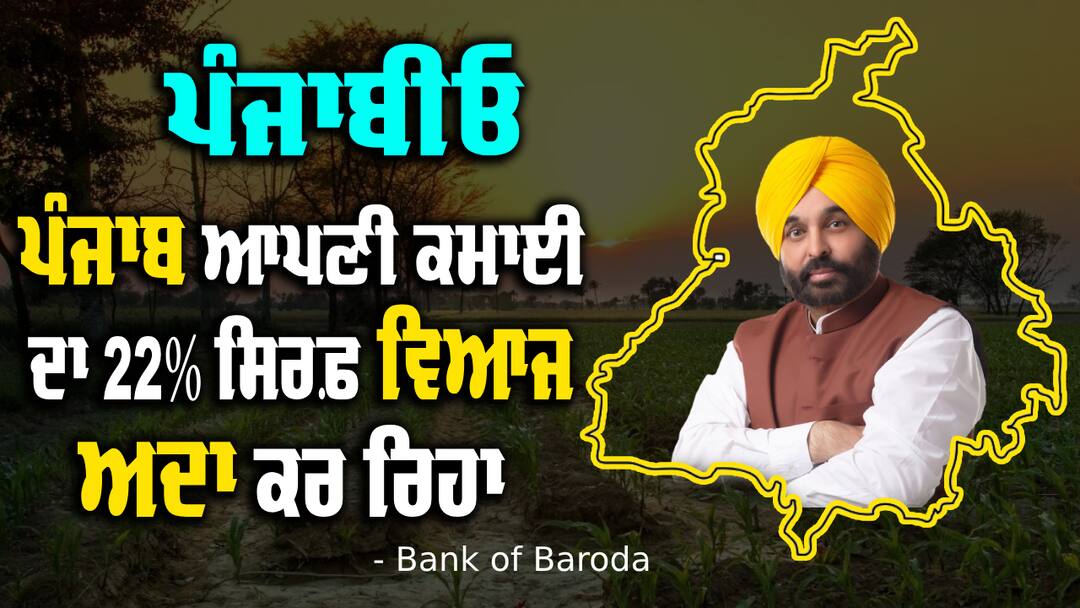 ਪੰਜਾਬ 'ਤੇ ਜੀਡੀਪੀ ਦੀ ਤੁਲਨਾ 'ਚ ਕਰਜ਼ 47 ਫੀਸਦ ਹੈ ਅਤੇ ਸੂਬੇ ਦੀ ਕੁੱਲ ਕਮਾਈ ਵਿੱਚੋਂ 22.2 ਫੀਸਦ ਰੁਪਏ ਵਿਆਜ ਦੀ ਅਦਾਇਗੀ 'ਤੇ ਜਾ ਰਿਹਾ ਹੈ। ਇਸੇ ਤਰ੍ਹਾਂ ਦੂਸਰੇ ਨੰਬਰ 'ਤੇ ਬਿਹਾਰ ਆਉਂਦਾ ਹੈ ਜਿਸ ਦੀ ਜੀਡੀਪੀ ਦੀ ਤੁਲਨਾ 'ਚ ਕਰਜ਼ 38 ਫੀਸਦ ਹੈ ਅਤੇ 08.60 ਫੀਸਦ ਵਿਆਜ 'ਚ ਕਮਾਈ ਜਾ ਰਹੀ ਹੈ।