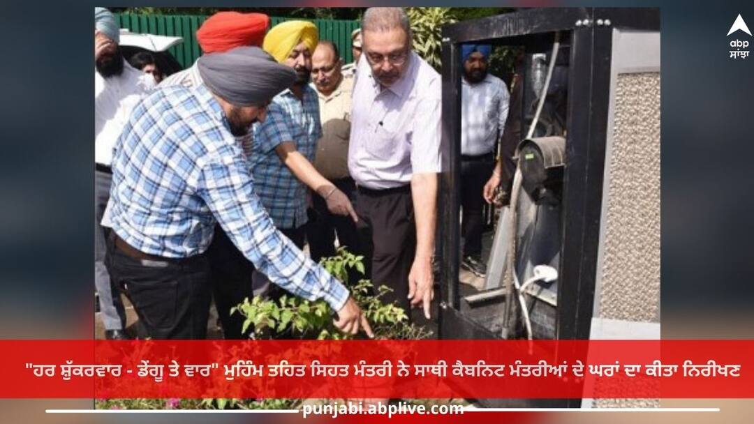 Punjab News: CM ਮਾਨ ਵੱਲੋਂ ਸ਼ੁਰੂ ਕੀਤੀ ਡੇਂਗੂ ਵਿਰੋਧੀ ਮੁਹਿੰਮ 'ਹਰ ਸ਼ੁਕਰਵਾਰ, ਡੇਂਗੂ 'ਤੇ ਵਾਰ' ਦੇ ਹਿੱਸੇ ਵਜੋਂ ਪੰਜਾਬ ਦੇ ਸਿਹਤ ਤੇ ਪਰਿਵਾਰ ਭਲਾਈ ਮੰਤਰੀ ਡਾ. ਬਲਬੀਰ ਸਿੰਘ ਨੇ ਅੱਜ ਲਗਾਤਾਰ ਤੀਸਰੇ ਸ਼ੁੱਕਰਵਾਰ ਨਿਰੀਖਣ ਕੀਤਾ। ਉਨ੍ਹਾਂ ਨੇ ਸੈਕਟਰ 39 ਸਥਿਤ ਆਪਣੇ ਕੈਬਨਿਟ ਸਾਥੀਆਂ ਦੀਆਂ ਰਿਹਾਇਸ਼ਾਂ, ਸਰਕਟ ਹਾਊਸ ਅਤੇ ਆਮ ਆਦਮੀ ਪਾਰਟੀ (AAP) ਪੰਜਾਬ ਦੇ ਪਾਰਟੀ ਦਫ਼ਤਰ ਦਾ ਜ਼ਮੀਨੀ ਪੱਧਰ 'ਤੇ ਨਿਰੀਖਣ ਕੀਤਾ। ਜ਼ਿਕਰਯੋਗ ਹੈ ਕਿ ਡਾ. ਬਲਬੀਰ ਸਿੰਘ ਨੇ 4 ਅਗਸਤ ਨੂੰ ਐੱਸ. ਏ. ਐੱਸ. ਨਗਰ ਜ਼ਿਲ੍ਹੇ ਦੇ ਪਿੰਡ ਬਹਿਲੋਲਪੁਰ ਤੋਂ ਇਸ ਮੁਹਿੰਮ ਦੀ ਸ਼ੁਰੂਆਤ ਕਰਦਿਆਂ ਘਰ-ਘਰ ਜਾ ਕੇ ਲੋਕਾਂ ਨੂੰ ਡੇਂਗੂ ਦੇ ਲਾਰਵੇ ਦੇ ਹੌਟਸਪੌਟ ਦਿਖਾ ਕੇ ਜਾਗਰੂਕ ਕੀਤਾ ਸੀ।