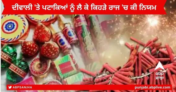 Diwali Crackers : ਦੀਵਾਲੀ ਦਾ ਮਤਲਬ ਹੈ ਮਠਿਆਈਆਂ ਅਤੇ ਪਟਾਕਿਆਂ ਦਾ ਤਿਉਹਾਰ। ਹਾਲਾਂਕਿ ਥੋੜੀ ਜਿਹੀ ਲਾਪਰਵਾਹੀ ਪਟਾਕਿਆਂ ਦੀ ਰੰਗ ਬਿਰੰਗੀ ਰੋਸ਼ਨੀ ਅਤੇ ਧਮਾਕੇ ਦਾ ਮਜ਼ਾ ਕਿਰਕਿਰਾ ਕਰ ਸਕਦੀ ਹੈ। ਇਸ ਲਾਪਰਵਾਹੀ ਕਾਰਨ ਹਰ ਸਾਲ ਲੱਖਾਂ ਲੋਕ ਜ਼ਖਮੀ ਹੋ ਜਾਂਦੇ ਹਨ। ਇਸ ਤੋਂ ਇਲਾਵਾ ਪਟਾਕਿਆਂ ਕਾਰਨ ਵਾਤਾਵਰਨ ਵਿੱਚ ਪ੍ਰਦੂਸ਼ਣ ਦਾ ਪੱਧਰ ਵੀ ਵੱਧਦਾ ਹੈ। ਅਜਿਹੇ 'ਚ ਵੱਖ-ਵੱਖ ਸੂਬਿਆਂ 'ਚ ਪਟਾਕਿਆਂ ਨੂੰ ਲੈ ਕੇ ਕਈ ਤਰ੍ਹਾਂ ਦੀਆਂ ਪਾਬੰਦੀਆਂ ਲਗਾਈਆਂ ਗਈਆਂ ਹਨ ਤਾਂ ਜੋ ਤਿਉਹਾਰਾਂ ਅਤੇ ਸਰਦੀਆਂ ਦੇ ਮੌਸਮ 'ਚ ਹਵਾ ਦੀ ਗੁਣਵੱਤਾ ਖਰਾਬ ਨਾ ਹੋਵੇ। ਪਟਾਕੇ ਚਲਾਉਣ 'ਤੇ ਪਾਬੰਦੀ ਹਟਾਉਣ ਲਈ ਦਾਇਰ ਪਟੀਸ਼ਨ ਦੀ ਸੁਣਵਾਈ ਦੌਰਾਨ ਸੁਪਰੀਮ ਕੋਰਟ ਨੇ ਕਿਹਾ ਕਿ ਜਸ਼ਨ ਅਤੇ ਤਿਉਹਾਰ ਮਨਾਉਣ ਦੇ ਕਈ ਤਰੀਕੇ ਹਨ। ਤੁਸੀਂ ਆਪਣੇ ਪੈਸੇ ਪਟਾਕਿਆਂ ਦੀ ਬਜਾਏ ਮਠਿਆਈਆਂ 'ਤੇ ਖਰਚ ਕਰੋ। ਭਾਰਤ ਵਿੱਚ ਦੀਵਾਲੀ ਇੱਕ ਮਹੱਤਵਪੂਰਨ ਤਿਉਹਾਰ ਹੈ। ਸਾਲਾਂ ਤੋਂ ਲੋਕ ਇਸ ਮੌਕੇ 'ਤੇ ਪਟਾਕੇ ਚਲਾ ਰਹੇ ਹਨ ਪਰ ਵਧਦੇ ਪ੍ਰਦੂਸ਼ਣ ਅਤੇ ਵਿਗੜਦੀ ਹਵਾ ਦੀ ਗੁਣਵੱਤਾ ਦੇ ਮੱਦੇਨਜ਼ਰ ਕੁਝ ਰਾਜਾਂ ਨੇ ਇਸ ਸਾਲ ਦੀਵਾਲੀ ਦੇ ਮੌਕੇ 'ਤੇ ਪਟਾਕੇ ਚਲਾਉਣ 'ਤੇ ਪਾਬੰਦੀ ਲਗਾ ਦਿੱਤੀ ਹੈ। ਹਾਲਾਂਕਿ, ਕੁਝ ਰਾਜਾਂ ਵਿੱਚ ਕੋਈ ਪਾਬੰਦੀ ਨਹੀਂ ਹੈ। ਜਦੋਂ ਕਿ ਕੁਝ ਰਾਜ ਅਜਿਹੇ ਹਨ ,ਜਿੱਥੇ ਪਟਾਕੇ ਫੂਕੇ ਜਾ ਸਕਦੇ ਹਨ ਪਰ ਸਿਰਫ ਗ੍ਰੀਨ ਪਟਾਕੇ। ਆਓ ਜਾਣਦੇ ਹਾਂ ਦੀਵਾਲੀ ਮੌਕੇ ਪਟਾਕਿਆਂ ਨੂੰ ਲੈ ਕੇ ਕਿਹੜੇ-ਕਿਹੜੇ ਰਾਜ 'ਚ ਕਿਹੜੇ-ਕਿਹੜੇ ਨਿਯਮ ਲਾਗੂ ਕੀਤੇ ਗਏ ਹਨ।