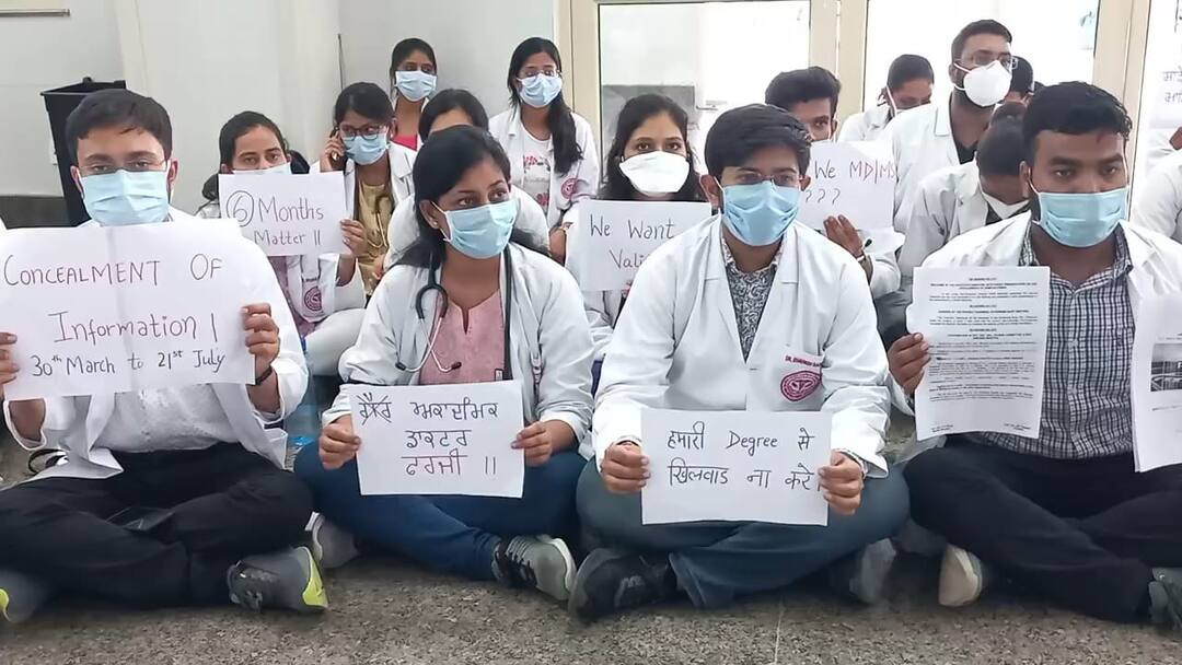 Punjab News : ਏਮਜ਼ ਹਸਪਤਾਲ ਦੇ ਡਾਕਟਰਾਂ ਨੇ ਧਰਨੇ 'ਤੇ ਬੈਠ ਕੇ ਆਪਣੀਆਂ ਮੰਗਾਂ ਨੂੰ ਲੈ ਕੇ ਹਸਪਤਾਲ ਦੇ ਪ੍ਰਸ਼ਾਸਨ ਖਿਲਾਫ ਨਰਾਜ਼ਗੀ ਜਤਾਈ ਹੈ। 50 ਦੇ ਕਰੀਬ ਡਾਕਟਰਾਂ ਵੱਲੋਂ ਹੱਥਾਂ ਵਿੱਚ ਤਖਤੀਆਂ ਫੜ ਕੇ ਪ੍ਰਸ਼ਾਸਨ ਅਤੇ ਸਰਕਾਰ ਖਿਲਾਫ ਰੋਸ ਜਤਾਇਆ। ਇਸ ਦੌਰਾਨ ਹਸਪਤਾਲ ਦੇ ਅਧਿਕਾਰੀਆਂ ਨੇ ਕਿਹਾ ਕਿ ਜਲਦ ਹੀ ਇਨ੍ਹਾਂ ਦੀਆਂ ਮੰਗਾਂ ਦਾ ਹੱਲ ਕੀਤਾ ਜਾਵੇਗਾ।