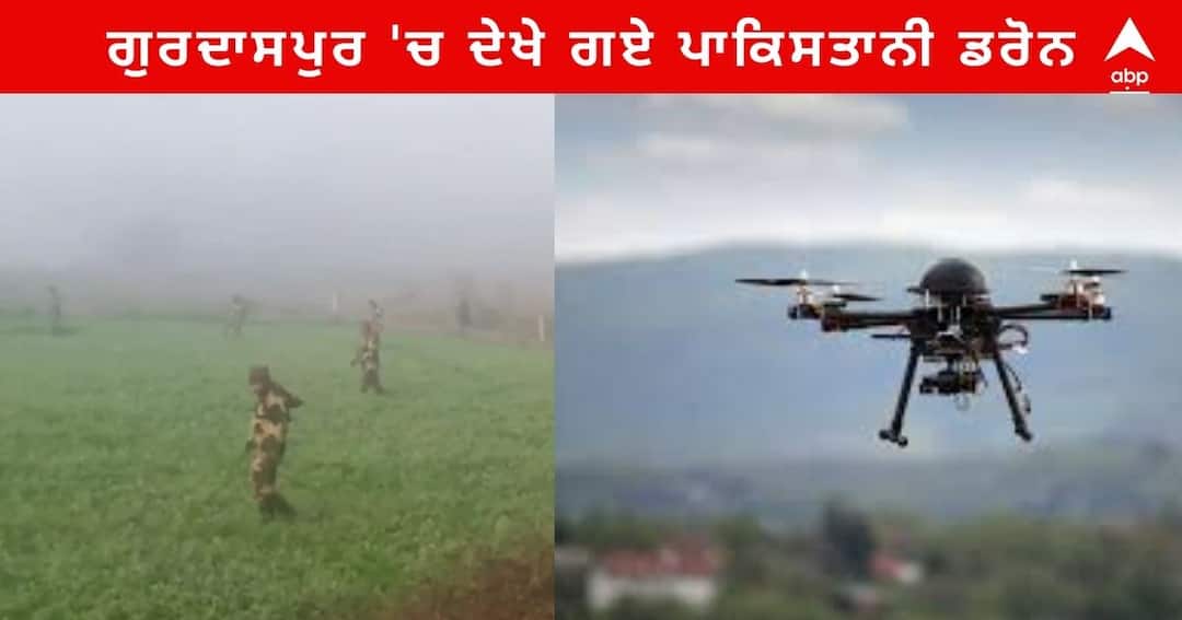 Drones in Gurdaspur : ਪੰਜਾਬ ਦੇ ਗੁਰਦਾਸਪੁਰ ਵਿੱਚ ਬੀਤੀ ਰਾਤ (18 ਦਸੰਬਰ) ਪਾਕਿਸਤਾਨੀ ਡਰੋਨ ਦੇਖੇ ਗਏ ਹਨ। ਬੀਐਸਐਫ ਦੀ ਚੰਦੂ ਵਡਾਲਾ ਪੋਸਟ ਅਤੇ ਕਾਸੋਵਾਲ ਪੋਸਟ ਨੇੜੇ ਪਾਕਿਸਤਾਨੀ ਡਰੋਨ ਦੇਖੇ ਜਾਣ ਤੋਂ ਬਾਅਦ ਜਵਾਨਾਂ ਨੇ ਆਸਪਾਸ ਦੇ ਇਲਾਕਿਆਂ ਵਿੱਚ ਤਲਾਸ਼ੀ ਮੁਹਿੰਮ ਚਲਾਈ ਹੈ। ਬੀਐਸਐਫ ਦੇ ਜਵਾਨਾਂ ਨੇ ਪਾਕਿਸਤਾਨੀ ਡਰੋਨ ਨੂੰ ਅੱਗੇ ਦਾਖਲ ਹੋਣ ਤੋਂ ਰੋਕਣ ਲਈ ਗੋਲੀਬਾਰੀ ਕੀਤੀ ਸੀ। ਇਸ ਘਟਨਾ ਦੀ ਵਧੇਰੇ ਜਾਣਕਾਰੀ ਦਿੰਦੇ ਹੋਏ ਬੀ.ਐੱਸ.ਐੱਫ. ਦੇ ਗੁਰਦਾਸਪੁਰ ਡੀ.ਆਈ.ਜੀ ਪ੍ਰਭਾਕਰ ਜੋਸ਼ੀ ਨੇ ਸੋਮਵਾਰ ਨੂੰ ਦੱਸਿਆ, ''ਮੰਨਿਆ ਜਾ ਰਿਹਾ ਹੈ ਕਿ ਇਹ ਡਰੋਨ ਪੰਜਾਬ ਦੇ ਗੁਰਦਾਸਪੁਰ ਸੈਕਟਰ 'ਚ ਅੰਤਰਰਾਸ਼ਟਰੀ ਸਰਹੱਦ ਦੇ ਪਾਕਿਸਤਾਨ ਵਾਲੇ ਪਾਸੇ ਤੋਂ ਭਾਰਤ 'ਚ ਦਾਖਲ ਹੋਏ ਸੀ। ਡਰੋਨ ਨੂੰ ਐਤਵਾਰ (18 ਦਸੰਬਰ) ਰਾਤ ਨੂੰ ਰੋਕਿਆ ਗਿਆ। ਚੰਦੂ ਨੂੰ ਵਡਾਲਾ ਚੌਕੀ ਅਤੇ ਕੱਸੋਵਾਲ ਚੌਕੀ 'ਤੇ ਐਤਵਾਰ ਰਾਤ ਨੂੰ 10.30 ਵਜੇ ਦੇਖੇ ਗਏ।