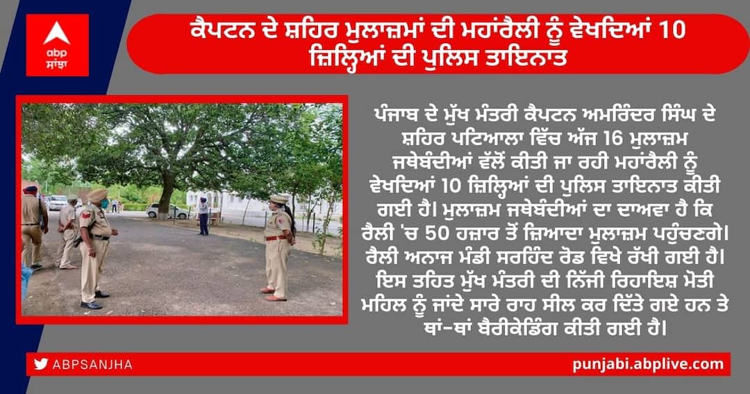 ਦੱਸ ਦਈਏ ਕਿ ਚੰਡੀਗੜ੍ਹ ਵਿੱਚੋਂ ਵੀ ਵੱਡੀ ਗਿਣਤੀ ਮੁਲਾਜ਼ਮ ਪਟਿਆਲਾ ਵੱਲ ਕੂਚ ਕਰ ਗਏ ਹਨ। ਮੁਲਾਜ਼ਮ ਲਹਿਰ ਦੇ ਇਤਿਹਾਸ ਵਿੱਚ ਪਹਿਲੀ ਵਾਰ ਹੋ ਰਿਹਾ ਹੈ ਕਿ ਰਾਜਧਾਨੀ ਤੋਂ ਪਟਿਆਲੇ ਨੂੰ ਚਾਲੇ ਪਾਏ ਹਨ ਕਿਉਂਕਿ ਮੁੱਖ ਮੰਤਰੀ ਤੇ ਕਾਂਗਰਸ ਦਾ ਸ਼ਹਿਰ ਪਟਿਆਲਾ ਹੈ।