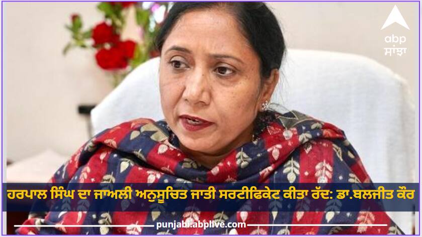Punjab News : ਸਮਾਜਿਕ ਨਿਆਂ, ਅਧਿਕਾਰਤਾ ਅਤੇ ਘੱਟ ਗਿਣਤੀ ਬਾਰੇ ਮੰਤਰੀ ਡਾ. ਬਲਜੀਤ ਕੌਰ ਨੇ ਦੱਸਿਆ ਕਿ ਹਰਪਾਲ ਸਿੰਘ ਪੁੱਤਰ ਅਜੀਤ ਸਿੰਘ ਲੁਧਿਆਣਾ ਜੋ ਬਤੌਰ ਡਾਕਟਰ ਕੰਮ ਕਰ ਰਿਹਾ ਹੈ, ਦਾ ਜਾਅਲੀ ਅਨੁਸੂਚਿਤ ਜਾਤੀ ਸਰਟੀਫਿਕੇਟ ਪੰਜਾਬ ਸਰਕਾਰ ਪੱਧਰ ਤੇ ਗਠਿਤ ਰਾਜ ਪੱਧਰੀ ਸਕਰੂਟਨੀ ਕਮੇਟੀ ਵੱਲੋਂ ਰੱਦ ਕੀਤਾ ਗਿਆ ਹੈ।