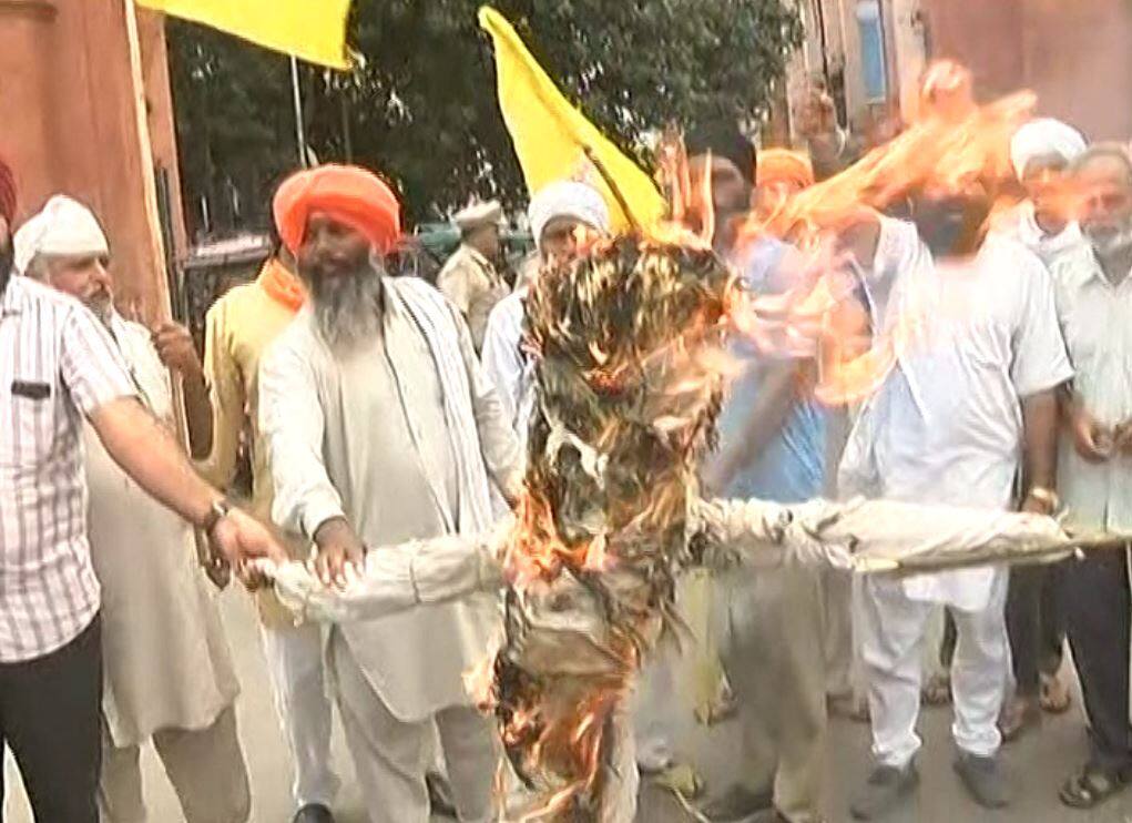 ਅੰਮ੍ਰਿਤਸਰ: ਇੱਕ ਪਾਸੇ ਭਾਜਪਾ ਵੱਲੋਂ ਖੰਨਾ ਸਮਾਰਕ ਵਿਖੇ ਦੇਸ਼ ਦੇ ਪ੍ਰਧਾਨ ਮੰਤਰੀ ਨਰਿੰਦਰ ਮੋਦੀ ਦੇ ਜਨਮ ਦਿਨ ਮੌਕੇ ਹਵਨ ਯੱਗ ਕਰਵਾਇਆ ਜਾ ਰਿਹਾ ਸੀ। ਦੂਜੇ ਪਾਸੇ ਕਿਸਾਨਾਂ ਵੱਲੋਂ ਬਿਲਕੁੱਲ ਉਸੇ ਸਮੇਂ 'ਤੇ ਪ੍ਰਧਾਨ ਮੰਤਰੀ ਦਾ ਪੁਤਲਾ ਸਾੜ ਕੇ ਪ੍ਰਦਰਸ਼ਨ ਕੀਤਾ ਜਾ ਰਿਹਾ ਸੀ।