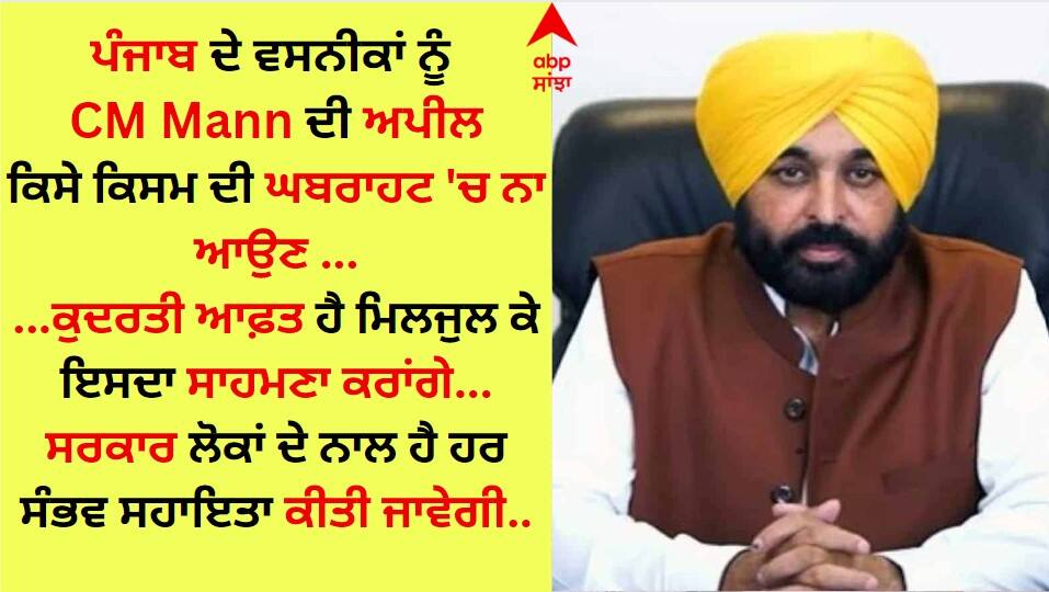 ਉਧਰ, ਮੁੱਖ ਮੰਤਰੀ ਭਗਵੰਤ ਮਾਨ ਨੇ ਲੋਕਾਂ ਨੂੰ ਅਪੀਲ ਕੀਤੀ ਹੈ ਕਿ ਉਹ ਕਿਸੇ ਕਿਸਮ ਦੀ ਘਬਰਾਹਟ ਵਿੱਚ ਨਾ ਆਉਣ। ਉਨ੍ਹਾਂ ਕਿਹਾ ਹੈ ਕਿ ਸਰਕਾਰ ਲੋਕਾਂ ਦੇ ਨਾਲ ਹੈ ਤੇ ਹਰ ਸੰਭਵ ਸਹਾਇਤਾ ਕੀਤੀ ਜਾਵੇਗੀ।