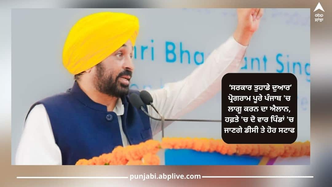 Punjab News: ਮੁੱਖ ਮੰਤਰੀ ਭਗਵੰਤ ਮਾਨ ਨੇ ‘ਸਰਕਾਰ ਤੁਹਾਡੇ ਦੁਆਰ’ ਪ੍ਰੋਗਰਾਮ ਨੂੰ ਪੰਜਾਬ ਭਰ ਵਿਚ ਲਾਗੂ ਕਰਨ ਦਾ ਐਲਾਨ ਕਰਦੇ ਹੋਏ ਕਿਹਾ ਕਿ ਹੁਣ ਹਫ਼ਤੇ ਵਿੱਚ ਦੋ ਵਾਰ ਡਿਪਟੀ ਕਮਿਸ਼ਨਰ ਤੇ ਹੋਰ ਸਟਾਫ ਪਿੰਡਾਂ ਦੇ ਦੌਰੇ ਕਰਕੇ ਲੋਕਾਂ ਦੀਆਂ ਸਮੱਸਿਆਵਾਂ ਦਾ ਮੌਕੇ ਉਤੇ ਨਿਬੇੜਾ ਕਰਨਗੇ। ਉਨ੍ਹਾਂ ਕਿਹਾ ਕਿ ਸਰਕਾਰ ਨੇ ਜ਼ਿਲ੍ਹਿਆਂ ਵਿਚ ਪਾਇਲਟ ਪ੍ਰਾਜੈਕਟ ਵਜੋਂ ਇਸ ਨੂੰ ਲਾਗੂ ਕੀਤਾ ਸੀ ਤੇ ਇਸ ਦੀ ਸਫਲਤਾ ਤੋਂ ਬਾਅਦ ਹੁਣ ਵਿਆਪਕ ਪੱਧਰ ਉਤੇ ਲਾਗੂ ਕੀਤਾ ਜਾ ਰਿਹਾ ਹੈ।