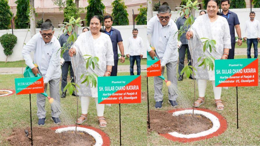 ਪੰਜਾਬ ਦੇ ਰਾਜਪਾਲ ਅਤੇ ਕੇਂਦਰ ਸ਼ਾਸਤ ਪ੍ਰਦੇਸ਼, ਚੰਡੀਗੜ੍ਹ ਦੇ ਪ੍ਰਸ਼ਾਸਕ ਸ੍ਰੀ ਗੁਲਾਬ ਚੰਦ ਕਟਾਰੀਆ ਨੇ ਆਪਣੀ ਪਤਨੀ ਸ੍ਰੀਮਤੀ ਅਨੀਤਾ ਕਟਾਰੀਆ ਨਾਲ ਪੰਜਾਬ ਰਾਜ ਭਵਨ ਦੇ ਕੈਂਪਸ ਵਿੱਚ ‘ਰੁਦਰਾਕਸ਼’ ਦੇ ਬੂਟੇ ਦੇ ਨਾਲ ਨਾਲ ਹੋਰ ਕਈ ਫਲਦਾਰ ਬੂਟੇ ਵੀ ਲਾਏ। ਇਸ ਮੌਕੇ ਪੰਜਾਬ ਰਾਜ ਭਵਨ ਦੇ ਅਧਿਕਾਰੀਆਂ ਵੱਲੋਂ ਵੀ ਵੱਖ-ਵੱਖ ਫ਼ਲਦਾਰ ਰੁੱਖਾਂ ਦੇ ਬੂਟੇ ਲਗਾਏ ਗਏ।