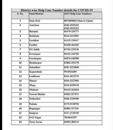 ਕੋਰੋਨਾਵਾਇਰਸ ਨੂੰ ਲੈ ਕੇ ਦਹਿਸ਼ਤ ਦਾ ਕਾਰਨ ਅਫਵਾਹਾਂ ਹਨ। ਇਸ ਲਈ ਸਰਕਾਰ ਨੇ ਸਖਤੀ ਦੇ ਹੁਕਮ ਦਿੱਤੇ ਹਨ। ਇਸ ਤੋਂ ਇਲਾਵਾ ਕੋਰੋਨਾਵਾਇਰਸ ਨੂੰ ਫੈਲਣ ਤੋਂ ਰੋਕਣ ਲਈ ਕਰਫਿਊ ਵੀ ਲਾਇਆ ਗਿਆ ਹੈ। ਜੇਕਰ ਕੋਈ ਵੀ ਜਾਣਕਾਰੀ ਲੈਣਾ ਜਾਂ ਦੇਣਾ ਚਾਹੁੰਦਾ ਹੈ ਤਾਂ ਸਰਕਾਰ ਵੱਲ਼ੋਂ ਜਾਰੀ ਇਨ੍ਹਾਂ ਨੰਬਰਾਂ 'ਤੇ ਸੰਪਰਕ ਕਰ ਸਕਦਾ ਹੈ।