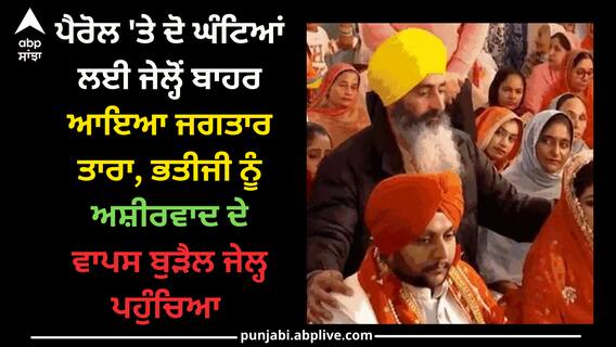 Jagtar Singh Tara released from jail: ਪੰਜਾਬ ਦੇ ਸਾਬਕਾ ਮੁੱਖ ਮੰਤਰੀ ਬੇਅੰਤ ਸਿੰਘ ਦੇ ਕਤਲ ਕੇਸ ਵਿੱਚ ਸਜ਼ਾ ਭੁਗਤ ਰਿਹਾ ਜਗਤਾਰ ਸਿੰਘ ਤਾਰਾ ਅੱਜ ਪੈਰੋਲ 'ਤੇ ਦੋ ਘੰਟਿਆਂ ਲਈ ਜੇਲ੍ਹ ਤੋਂ ਵਾਪਸ ਆਇਆ। ਤਾਰਾ ਨੂੰ ਹਾਈਕੋਰਟ ਨੇ ਭਤੀਜੀ ਦੇ ਵਿਆਹ ਵਿੱਚ ਸ਼ਾਮਲ ਹੋਣ ਲਈ ਦੋ ਘੰਟਿਆਂ ਦੀ ਪੈਰੋਲ ਦਿੱਤੀ ਸੀ। ਪੈਰੋਲ ਖ਼ਤਮ ਹੋਣ ਤੋਂ ਬਾਅਦ ਪੁਲਿਸ ਤਾਰਾ ਨੂੰ ਬੁੜੈਲ ਜੇਲ੍ਹ ਲੈ ਗਈ। ਤਾਰਾ ਨੂੰ ਪੰਜਾਬ ਤੇ ਹਰਿਆਣਾ ਹਾਈ ਕੋਰਟ ਨੇ 11 ਵਜੇ ਤੋਂ ਦੁਪਹਿਰ 1 ਵਜੇ ਤੱਕ ਪੈਰੋਲ ਦਿੱਤੀ ਸੀ।