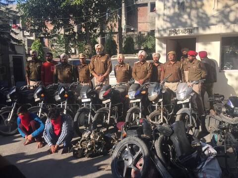 ਜਲੰਧਰ: ਪੁਲਿਸ ਨੇ ਵਾਹਨ ਚੋਰੀ ਤੇ ਏਟੀਐਮ ਠੱਗੀ ਦੇ ਦੋ ਵੱਖ-ਵੱਖ ਮਾਮਲਿਆਂ 'ਚ 10 ਮੁਲਜ਼ਮਾਂ ਨੂੰ ਕਾਬੂ ਕਰਨ ਤੇ ਉਨ੍ਹਾਂ ਕੋਲੋਂ ਵੱਡੀ ਮਾਤਰਾ 'ਚ ਸਾਮਾਨ ਬਰਾਮਦ ਕਰਨ ਦਾ ਦਾਅਵਾ ਕੀਤਾ ਹੈ। ਪਹਿਲੇ ਮਾਮਲੇ 'ਚ ਪੁਲਿਸ ਨੇ ਵਾਹਨ ਚੋਰ ਗਰੋਹ ਦੇ ਦੋ ਮੈਂਬਰ ਕਾਬੂ ਕੀਤੇ ਹਨ ਜਿਨ੍ਹਾਂ ਕੋਲੋਂ 11 ਮੋਟਰਸਾਈਕਲ ਤੇ ਪੰਜ ਮੋਟਰਸਾਈਕਲ ਇੰਜਣ ਬਰਾਮਦ ਹੋਏ ਹਨ। ਇਹ ਗਰੋਹ ਚੋਰੀ ਦੇ ਮੋਟਰਸਾਈਕਲਾਂ ਦਾ ਸਾਮਾਨ ਕਬਾੜ 'ਚ ਵੇਚ ਕੇ ਪੈਸੇ ਕਮਾਉਂਦਾ ਕਰਦਾ ਸੀ। ਇਸੇ ਤਰ੍ਹਾਂ ਦੂਜੇ ਮਾਮਲੇ 'ਚ ਪੁਲਿਸ ਨੇ ਏਟੀਐਮ ਠੱਗ ਗਰੋਹ ਦੇ ਅੱਠ ਮੈਂਬਰਾਂ ਨੂੰ ਗ੍ਰਿਫ਼ਤਾਰ ਕਰਨ 'ਚ ਸਫਲਤਾ ਹਾਸਲ ਕੀਤੀ ਹੈ। ਇਹ ਗਰੋਹ ਧੋਖੇ ਨਾਲ ਏਟੀਐਮ ਕਾਰਡ ਬਦਲ ਕੇ ਆਮ ਲੋਕਾਂ ਨੂੰ ਸ਼ਿਕਾਰ ਬਣਾਉਂਦਾ ਸੀ। ਪੁਲਿਸ ਨੇ ਇਸ ਗਰੋਹ ਤੋਂ 36 ਏਟੀਐਮ ਕਾਰਡ, 46 ਹਜ਼ਾਰ ਰੁਪਏ ਨਕਦ, ਦੋ ਮੋਟਰਸਾਈਕਲ ਤੇ ਇੱਕ ਸਕੂਟਰ ਬਰਾਮਦ ਕੀਤਾ ਹੈ। ਪੁਲਿਸ ਮੁਤਾਬਕ ਮੁੱਢਲੀ ਪੜਤਾਲ ਦੌਰਾਨ ਇਨ੍ਹਾਂ ਮੁਲਜ਼ਮਾਂ ਦੇ ਅੜਿੱਕੇ ਆਉਣ ਨਾਲ ਕਈ ਮਾਮਲੇ ਸੁਲਝੇ ਹਨ ਤੇ ਅਦਾਲਤ ਤੋਂ ਇਨ੍ਹਾਂ ਦਾ ਰਿਮਾਂਡ ਲੈ ਕੇ ਹੋਰ ਪੁੱਛਗਿੱਛ ਕੀਤੀ ਜਾਵੇਗੀ।