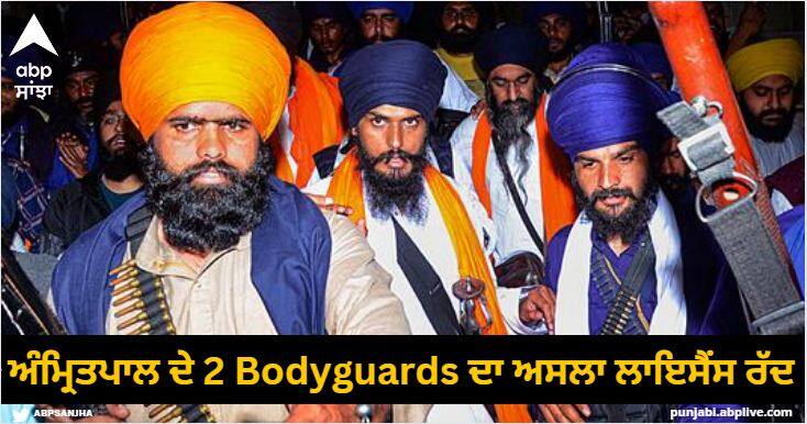 ਜੰਮੂ-ਕਸ਼ਮੀਰ ਦੇ ਕਿਸ਼ਤਵਾੜ ਅਤੇ ਰਾਮਬਨ ਦੇ ਡਿਪਟੀ ਕਮਿਸ਼ਨਰ ਨੇ ਦੱਸਿਆ ਕਿ ਅੰਮ੍ਰਿਤਪਾਲ ਸਿੰਘ ਦੇ ਦੋ Bodyguards ਨੂੰ ਜਾਰੀ ਹਥਿਆਰਾਂ ਦਾ ਲਾਇਸੈਂਸ ਰੱਦ ਕਰਨ ਦੇ ਹੁਕਮ ਜਾਰੀ ਕਰ ਦਿੱਤੇ ਗਏ ਹਨ। ਇਨ੍ਹਾਂ ਵਿੱਚ 19 ਸਿੱਖ ਰੈਜੀਮੈਂਟ ਦੇ ਸੇਵਾਮੁਕਤ ਸਿਪਾਹੀ ਵਰਿੰਦਰ ਸਿੰਘ ਅਤੇ 23 ਆਰਮਡ ਪੰਜਾਬ ਤੋਂ ਸੇਵਾਮੁਕਤ ਸਿਪਾਹੀ ਤਲਵਿੰਦਰ ਸਿੰਘ ਦੇ ਨਾਂ ਸ਼ਾਮਲ ਹਨ। ਪੰਜਾਬ ਪੁਲਿਸ ਨੇ ਵਰਿੰਦਰ ਸਿੰਘ ਨੂੰ ਵੀ ਗ੍ਰਿਫਤਾਰ ਕਰ ਲਿਆ ਹੈ।