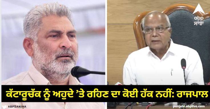 Punjab News : ਕੈਬਨਿਟ ਮੰਤਰੀ ਲਾਲ ਚੰਦ ਕਟਾਰੂਚੱਕ ਦੇ ਮਾਮਲੇ 'ਤੇ ਪੰਜਾਬ ਦੇ ਰਾਜਪਾਲ ਬਨਵਾਰੀ ਲਾਲ ਪੁਰੋਹਿਤ ਨੇ ਵੱਡਾ ਬਿਆਨ ਦਿੱਤਾ ਹੈ। ਰਾਜਪਾਲ ਬਨਵਾਰੀ ਲਾਲ ਪੁਰੋਹਿਤ ਨੇ ਅੱਜ ਕਾਨਫਰੰਸ ਨੂੰ ਸੰਬੋਧਨ ਕਰਦੇ ਹੋਏ ਕਿਹਾ, ਲਾਲ ਚੰਦ ਕਟਾਰੂਚੱਕ ਨੇ ਘਿਨੌਣਾ ਅਪਰਾਧ ਕੀਤਾ ਹੈ ਤੇ ਉਨ੍ਹਾਂ ਨੂੰ ਕੈਬਨਿਟ ਵਿੱਚ ਰਹਿਣ ਦਾ ਹੱਕ ਨਹੀਂ ਹੈ। ਉਨ੍ਹਾਂ ਨੇ ਮੁੱਖ ਮੰਤਰੀ ਭਗਵੰਤ ਮਾਨ ਨੂੰ ਲਾਲ ਚੰਦ ਕਟਾਰੂਚੱਕ 'ਤੇ ਕਾਰਵਾਈ ਕਰਨ ਲਈ ਮੁੜ ਤੋਂ ਕਿਹਾ ਹੈ। ਉਨ੍ਹਾਂ ਨੇ ਕਿਹਾ ਕਿ ਮੀਡੀਆ ਦੇ ਮਾਧਿਆਮ ਰਾਹੀਂ ਮੈਂ ਮੁੱਖ ਮੰਤਰੀ ਨੂੰ ਕਹਿਣਾ ਚਾਹੁੰਦਾ ਹਾਂ ਕਿ ਉਹ ਆਪਣੇ ਮੰਤਰੀ ਖਿਲਾਫ਼ ਤੁਰੰਤ ਕਾਰਵਾਈ ਕਰਨ, ਜਿਨ੍ਹਾਂ ਨੇ ਘਿਨੌਣਾ ਅਪਰਾਧ ਕੀਤਾ ਹੈ। ਬਨਵਾਰੀ ਲਾਲ ਪੁਰੋਹਿਤ ਨੇ ਕਿਹਾ ਹੈ ਕਿ ਪੰਜਾਬ ਦੇ ਮੰਤਰੀ ਲਾਲ ਚੰਦ ਕਟਾਰੂਚੱਕ ਦੇ ਮਾਮਲੇ ਵਿੱਚ ਰਾਜਪਾਲ ਨੇ ਕਿਹਾ, ਉਹ ਮੁੱਖ ਮੰਤਰੀ ਨੂੰ ਚੇਤੇ ਕਰਵਾਉਣਾ ਚਾਹੁੰਦੇ ਹਨ ਕਿ ਕਟਾਰੂਚੱਕ ਨੇ ਘਿਨੌਣਾ ਅਪਰਾਧ ਕੀਤਾ ਹੈ ਤੇ ਉਨ੍ਹਾਂ ਨੂੰ ਅਹੁਦੇ ਉੱਤੇ ਰਹਿਣ ਦਾ ਕੋਈ ਹੱਕ ਨਹੀਂ ਹੈ। ਉਹਨਾਂ ਮੀਡੀਆ ਦੇ ਸਵਾਲਾਂ ਦੇ ਜਵਾਬ ਦੇ ਰਹੇ ਸਨ।