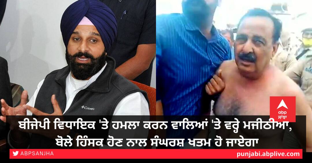 ਬਰਨਾਲਾ: ਸੀਨੀਅਰ ਅਕਾਲੀ ਲੀਡਰ ਬਿਕਰਮ ਸਿੰਘ ਮਜੀਠੀਆ ਨੇ ਬੀਜੇਪੀ ਵਿਧਾਇਕ ਅਰੁਣ ਨਾਰੰਗ 'ਤੇ ਹੋਏ ਹਮਲੇ ਦੀ ਨਿਖੇਧੀ ਕੀਤੀ ਹੈ। ਉਨ੍ਹਾਂ ਕਿਹਾ ਕਿ ਹਮਲਾ ਕਰਨ ਵਾਲਿਆਂ ਨੇ ਖੇਤੀ ਕਾਨੂੰਨਾਂ ਵਿਰੁੱਧ ਚੱਲ ਰਹੇ ਸ਼ਾਂਤਮਈ ਕਿਸਾਨੀ ਸੰਘਰਸ਼ ਨੂੰ ਢਾਹ ਲਾਉਣ ਦੀ ਕੀਤੀ ਕੋਸ਼ਿਸ਼ ਹੈ। ਹਿੰਸਕ ਹੋਣ ਨਾਲ ਸੰਘਰਸ਼ ਖਤਮ ਹੋ ਜਾਏਗਾ।