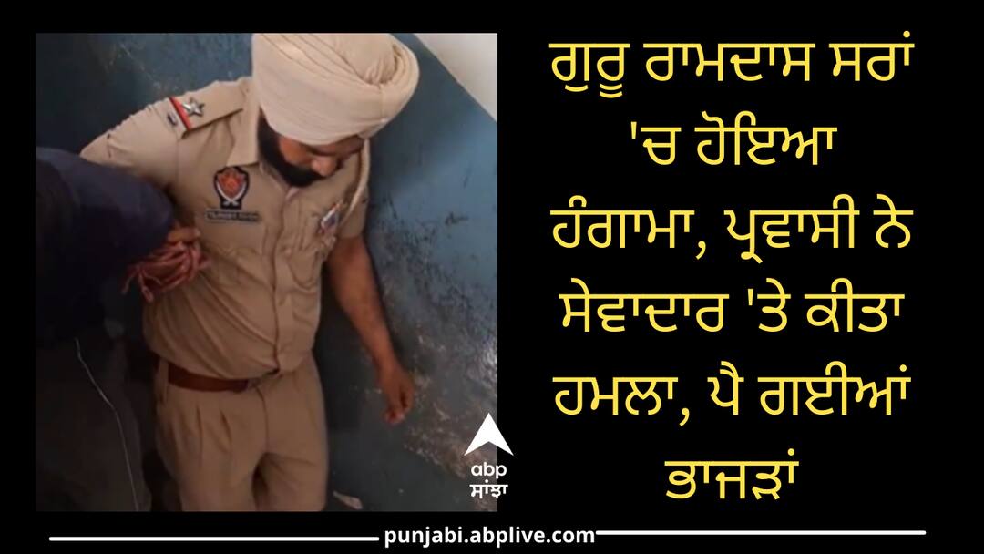 Punjab News: ਅੰਮ੍ਰਿਤਸਰ ਦੇ ਸ੍ਰੀ ਦਰਬਾਰ ਸਾਹਿਬ ਕੰਪਲੈਕਸ ‘ਚ ਗੁਰੂ ਰਾਮਦਾਸ ਸਰਾਂ ‘ਚ ਹੰਗਾਮਾ ਹੋਣ ਦੀ ਖ਼ਬਰ ਸਾਹਮਣੇ ਆਈ ਹੈ। ਇਥੇ ਇੱਕ ਪ੍ਰਵਾਸੀ ਮਜ਼ਦੂਰ ਨੇ ਸੇਵਾਦਾਰ ਅਤੇ ਸੰਗਤ ‘ਤੇ ਹਮਲਾ ਕਰ ਦਿੱਤਾ ਹੈ। ਮਜ਼ਦੂਰ ਨੇ ਲੋਹੇ ਦੀ ਰਾਡ ਨਾਲ ਲੋਕਾਂ ‘ਤੇ ਹਮਲਾ ਕੀਤਾ ਹੈ। ਹਮਲੇ ‘ਚ 2 ਸੇਵਾਦਾਰਾਂ ਸਣੇ 4 ਲੋਕ ਲੋਕ ਜਖ਼ਮੀ ਹੋ ਗਏ ਹਨ।